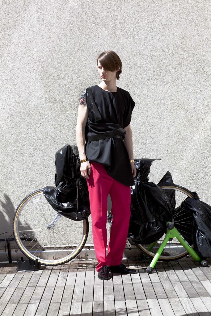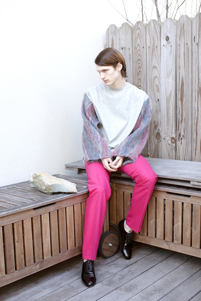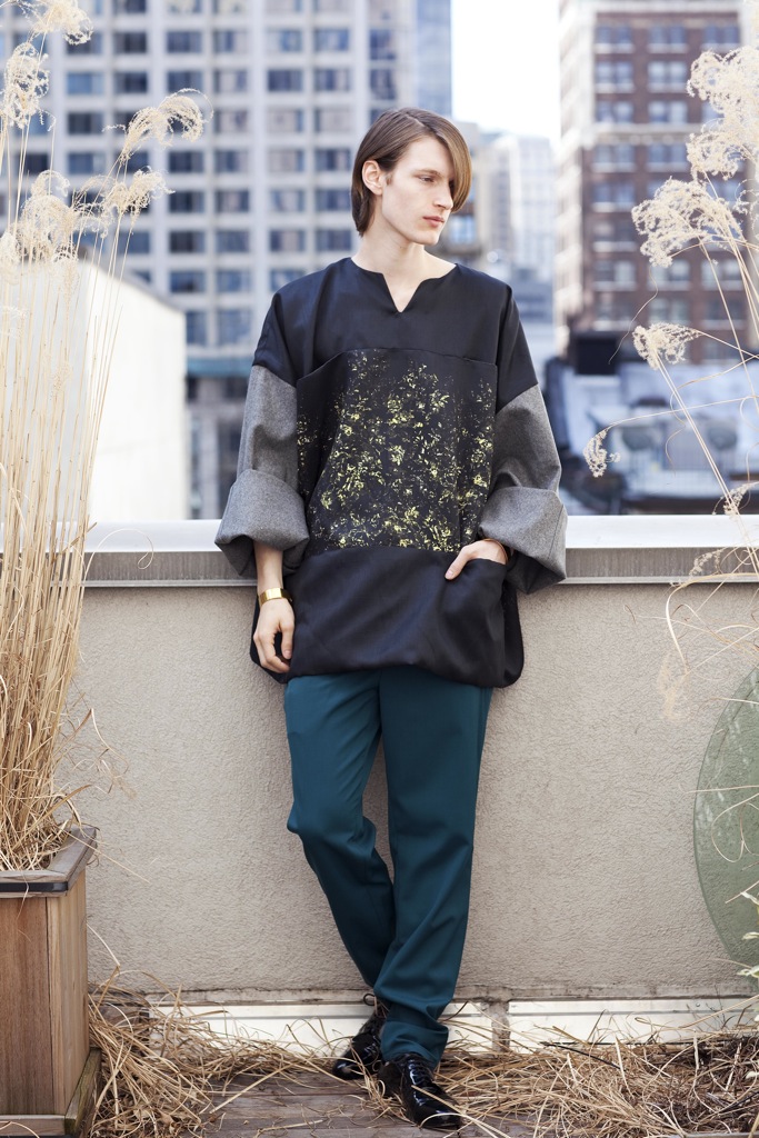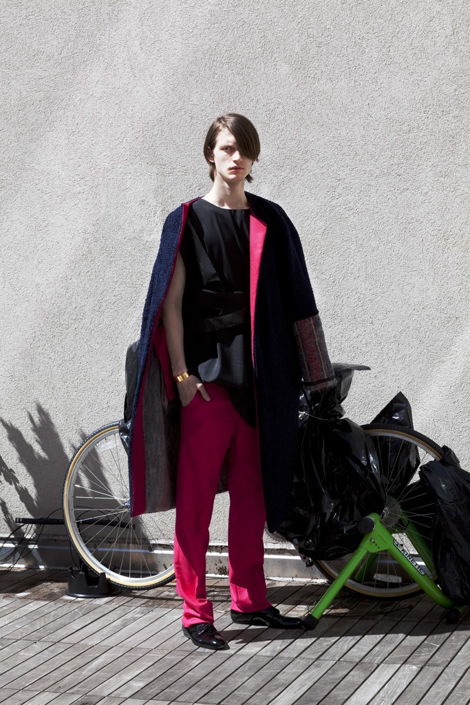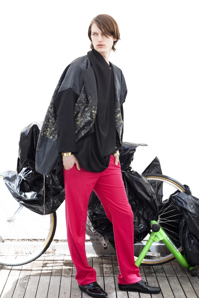 New Uniform–Structure and shape are the driving forces behind the fall/winter 2013 collection of George Bezhanishvili. Model Ian O’Brien of Red sports the statement pieces, which include loose yet structured tunics, precisely tailored and draped pants, and a unique fabric blocking amidst a bold color palette. George Bezhanishvili dips into strong visual aesthetics with each piece telling an individual story of the collection, all captured by photographer Peter Stanglmayr.