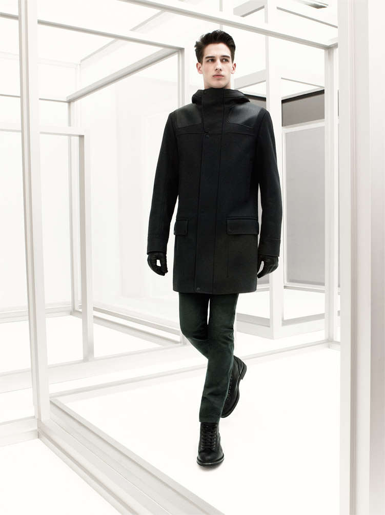 Modern Reflections-Photographer Daniel Jackson shoots Hugo by Hugo Boss’ fall/winter 2013 campaign, focusing his sights on American model Ian Sharp. Celebrating its 20th anniversary in the fashion industry, the German label provides a winter collection, designed by Bart de Backer, that compares the past and the future of the brand, combining tradition and innovation. Captured inside an aseptic white architectural setting, Ian is a sleek silhouette in biker jackets, skinny trousers or structured coats, available in an essential palette of classic colors.