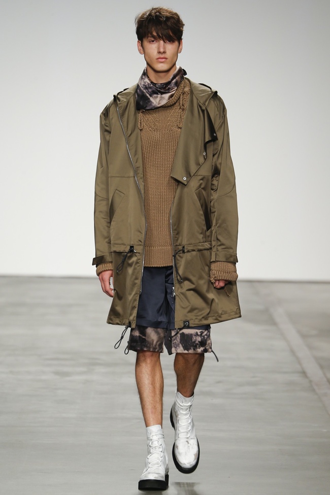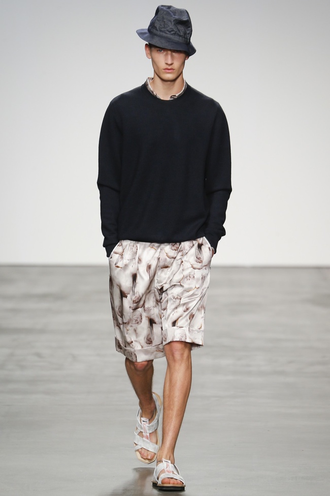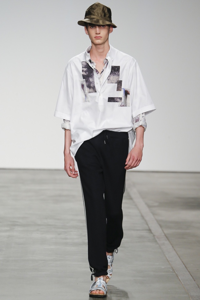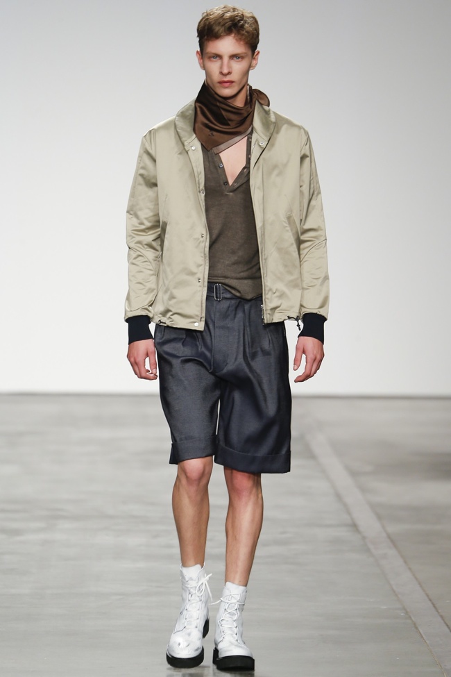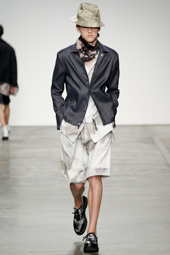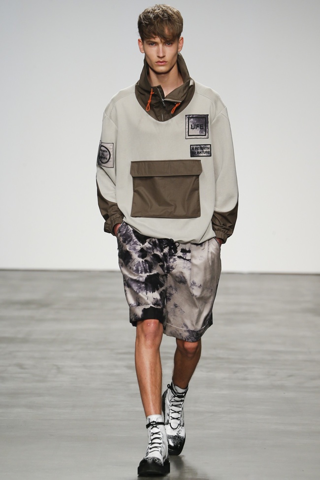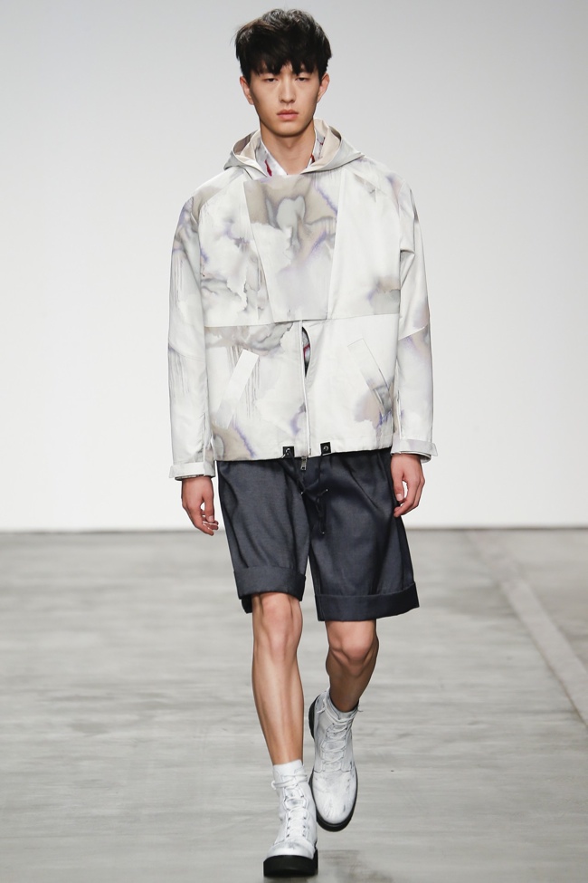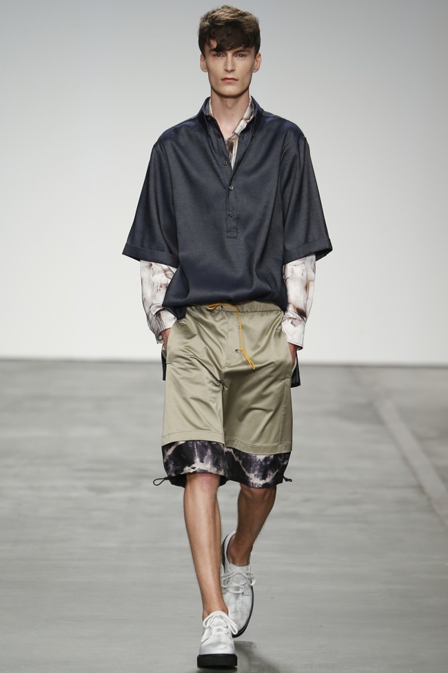 Iceberg Spring/Summer 2015Iceberg experiences a ‘Rebirth in Nature’ for its spring/summer 2015 collection. Embracing a sporty style motif, the Italian label takes a deep journey into nature, finding somewhere along the path a 1990s-inspired street style. Here, soft shapes are conveyed with a natural ease of motion. Picking up tones from the journey, earthy hues are contrasted against a print of the sky and floral-inspired pops of color. Here, printed jackets are met with short-sleeve button-downs worn over long sleeves, henleys with graphics and active knitwear with halved sleeves. Add to the mix windbreakers, loose-cut trousers, skinny belts and shorts with an adjustable hem width for a true active experience.
