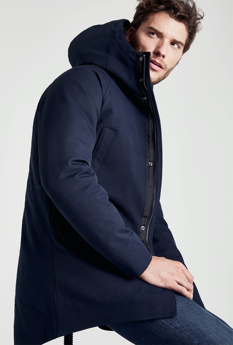 IKKS tackles winter weather with a new outing dedicated to its men’s outerwear. Once again, the brand connects with Aurelien Muller; the face of the season. Front and center, the French model sports parkas, hooded jackets, and more. The styles come in predominantly dark colors, but IKKS does serve up a bold parka in a vibrant orange. Meanwhile, the clean studio images also showcase effortless wardrobe essentials. Aurelien wears key clothing such as the hoodie and shawl-neck collar sweater.