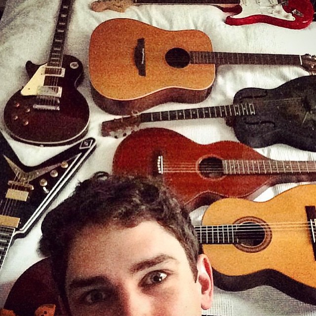 PinArthur Gosse poses with quite the guitar collection.
