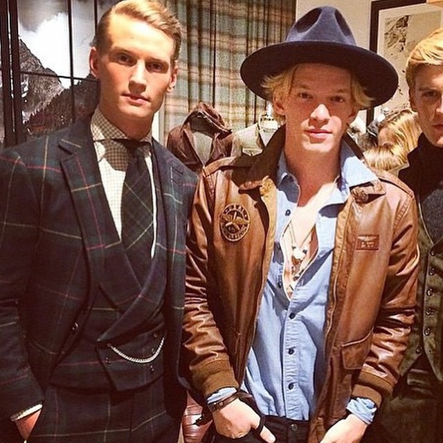 Alexander Johansson poses with singer Cody Simpson at Ralph Lauren's fall 2015 presentation.Pin