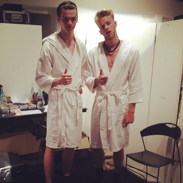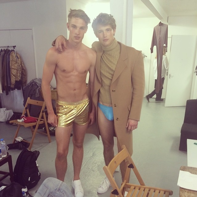 PinCorey Baptiste, Fabio Mancini and Patrick Kafka pose backstage with designer Giorgio Armani.PinEmilio Flores and Juan Betancourt are captured on the move.PinFilip Hrivnak and Clark Bockelman pose together in their robes behind the scenes.PinJohn Todd stops by his agency.PinAdrian Cardoso poses for a silly photo.PinKevin and Jonathan Sampaio cheers to another birthday.PinLaurin Krausz and Patrick Kafka show off their hair from the Armani show.PinTommy Marr and Paddy Mitchell are go go boys for the day.PinTravis Smith takes a moment to relax.