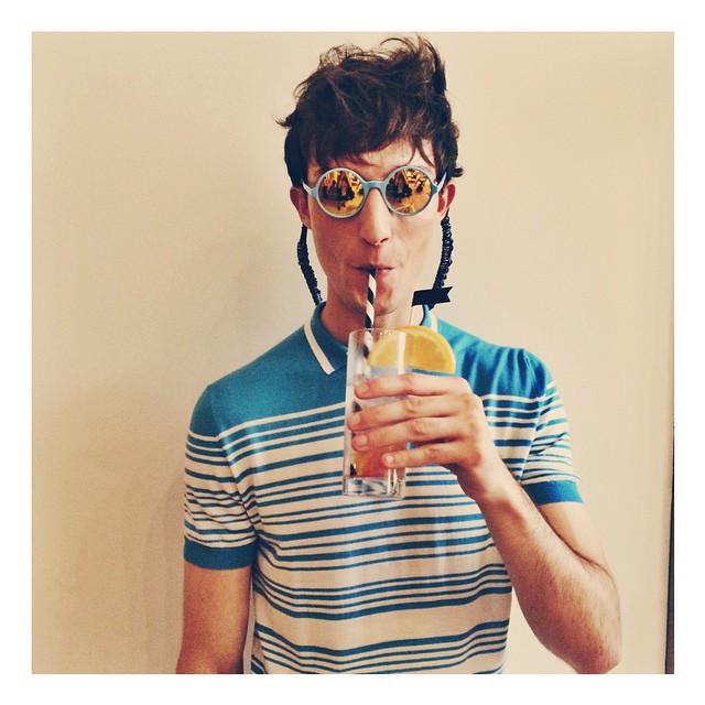 PinMax von Isser enjoys a refreshing beverage at Orley’s spring/summer 2015 show.