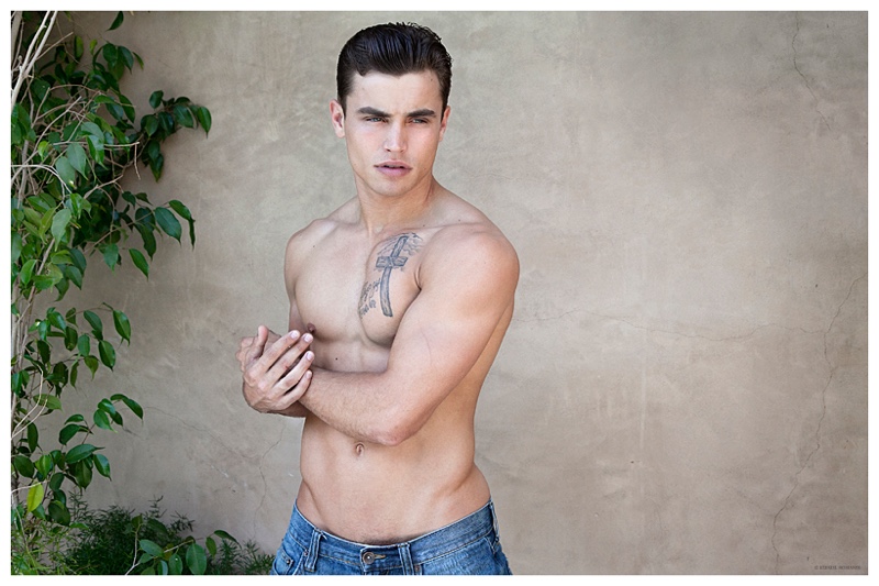 Photographer Ezekiel Robianes shares images from a new shoot featuring up and coming model Andrew Scott-Mayo. The Los Angeles-based model poses for casual images, wearing slim-cut denim jeans and an oversized knit cardigan sweater.