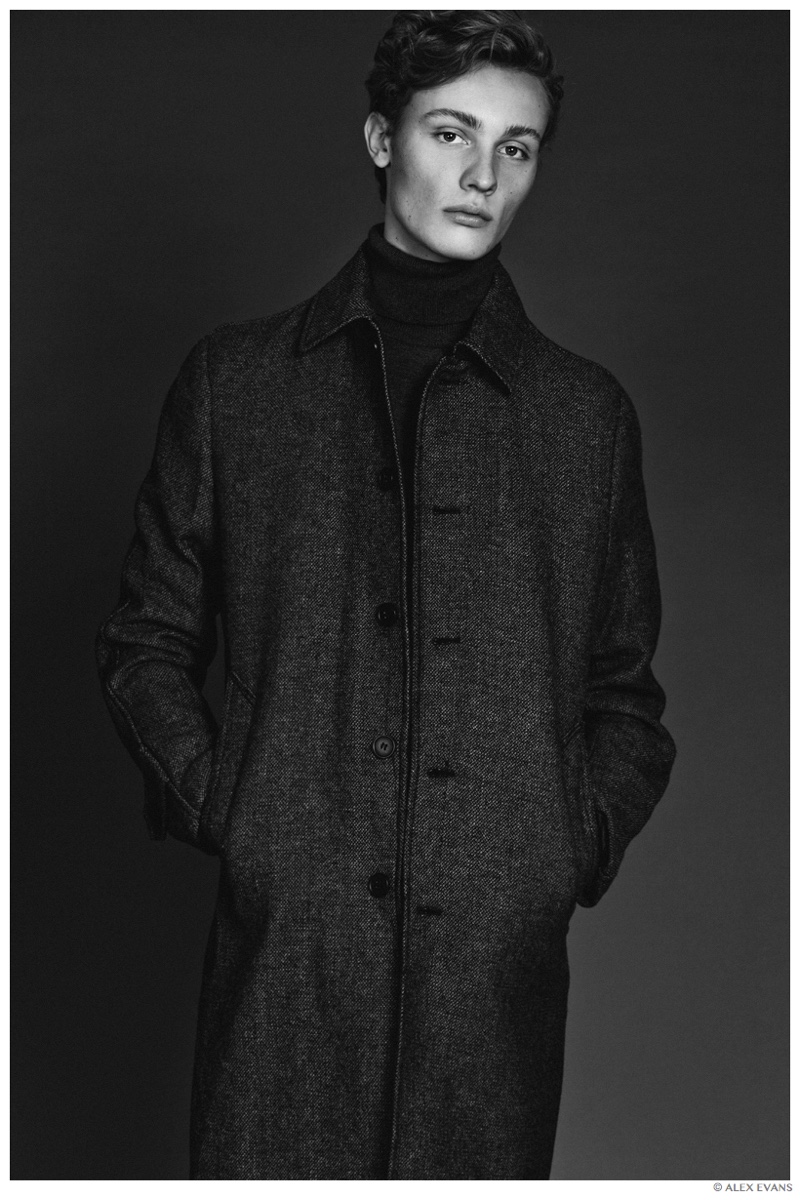 Photographer Alex Evans connects with stunning Ciotti Models fresh face Dylan Bell for a photo session. Posing in a slim-cut, black wardrobe, Dylan delivers a striking series of images, drawing a magnetic connection to the camera.