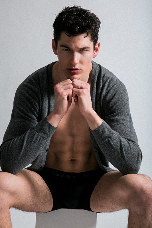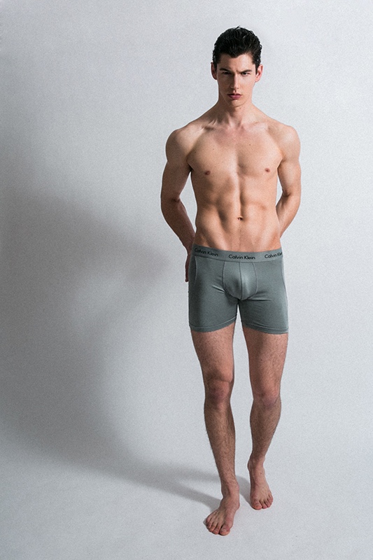 Elite Toronto model up and comer is the subject of a new portrait series lensed by photographers Juan Neira and Mai Tilson. Embracing basics for the studio shoot, Jesse is pictured in Calvin Klein underwear and lone staples as he hits his best angles for a mix of color and black & white images. / Grooming by Melanie White.