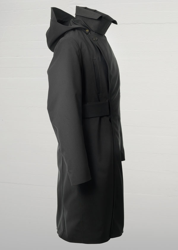 Debuting this season is Bergen-based label Norwegian Rain. Based in one of Europe’s rainiest cities (it rains two out of three days), Norwegian Rain is the joint collaboration of graphic design studio Grandpeople, bespoke tailor/designer T-Michael and founder/creative director Alexander Helle. Motivated by the primary goals of staying dry and stylish, fall’s eco-friendly range was inspired by Japanese minimalism, Scandinavian functionalism and 6,050 days of Norwegian rain. Blending classic tailoring and technology for rain protection, Norwegian Rain has developed three-layer garments that include a highly water repellent outer shell, a waterproof breathable membrane and a satin lining to keep the technical aspects hidden from view. Finally a heat sealing film is applied to each seam to prevent water penetration. The result is a sleek modern coat that is accompanied by no worries of being caught out in the rain.