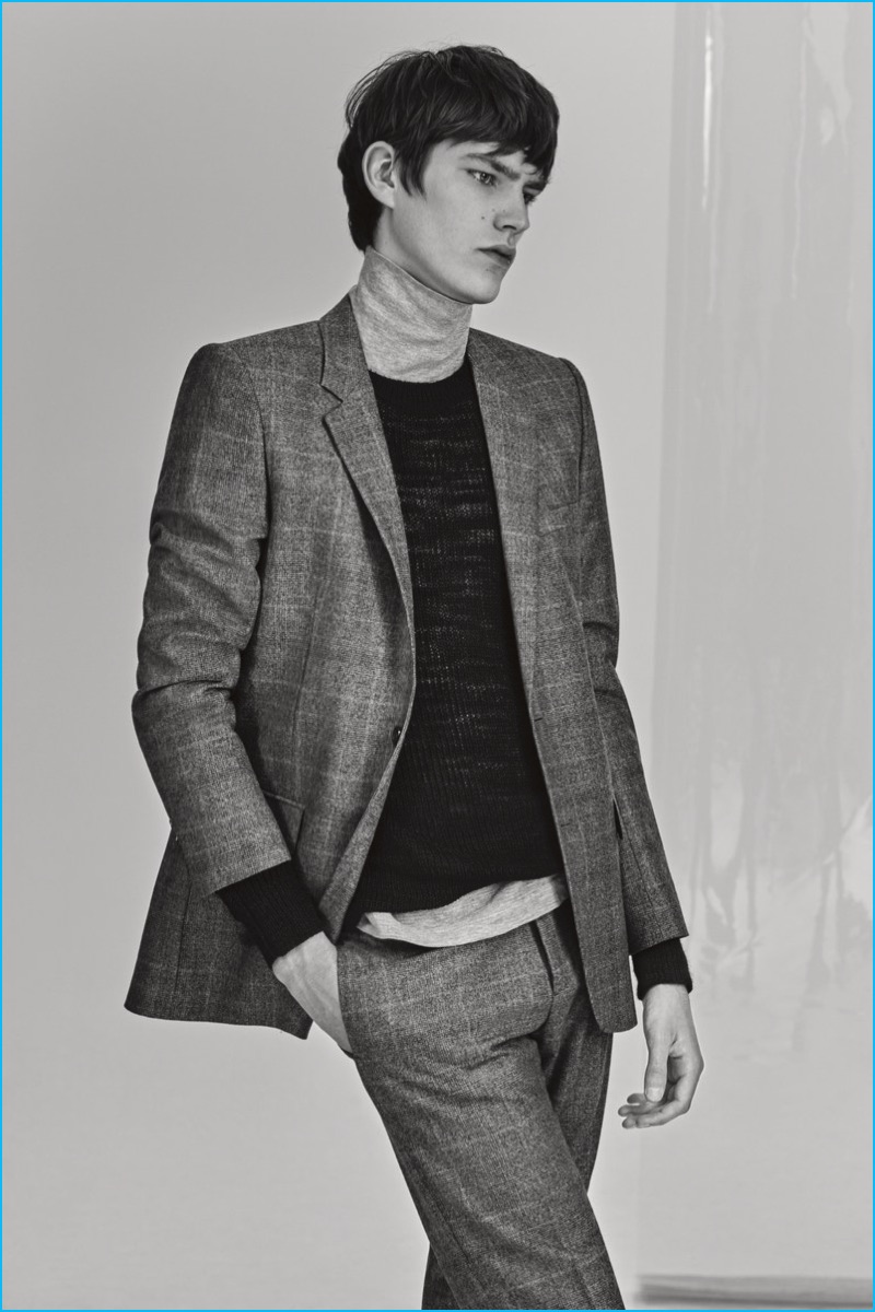 Elias de Poot dons a timeless turtleneck with a trim suit for IRO's fall-winter 2016 campaign.Pin
