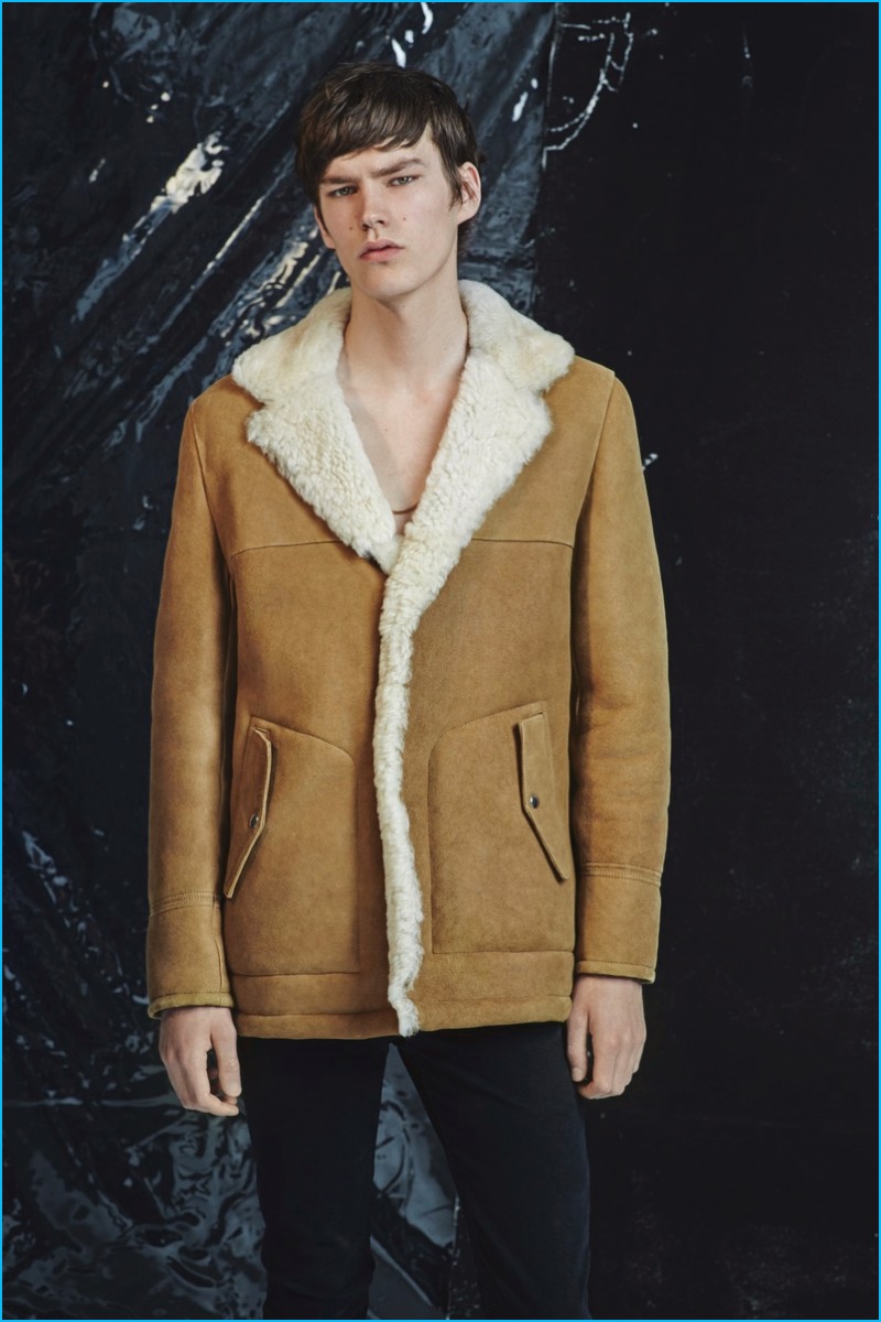 Elias de Poot represents one of the biggest fall trends, wearing a shearling jacket from IRO's latest men's collection.Pin