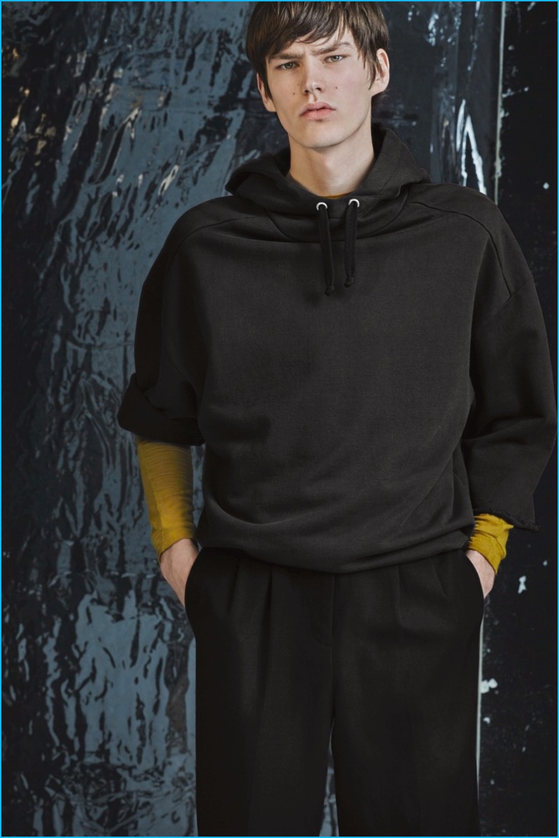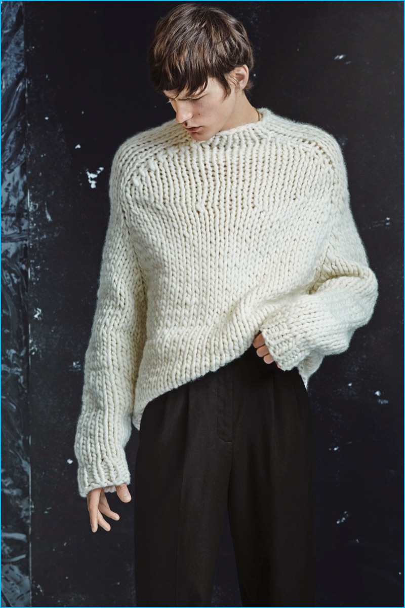 Elias de Poot dons an oversized sweater from IRO's fall-winter 2016 collection.Pin