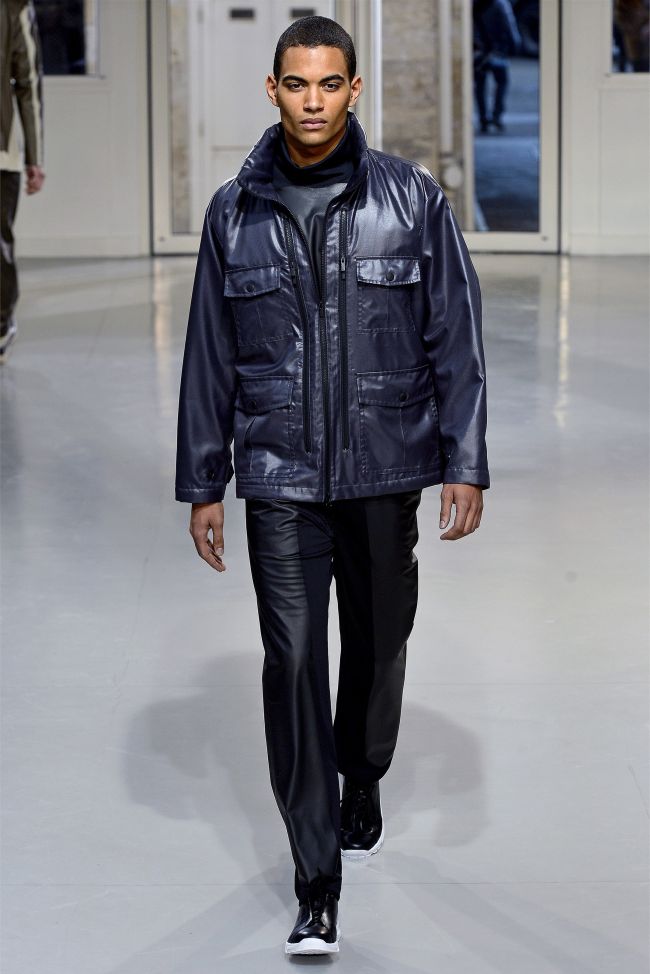 To the End of the World–To say the latest from Issey Miyake was out of this world would be an understatement. For the fall/winter 2013 collection of the label, technical innovation was close to the season’s heart with a great deal of texture play. Fusing the eastern-inspired relaxed fit with a modern view of fabrications, contrasting fabrics were fused together or furnished in metallic silver or gold. Embodying an active quality, the windbreaker was extended and transformed, existing as both a parka and a poncho. Meanwhile, quilted outerwear and foils provided for not only the ultimate style statement but a sense of protection.