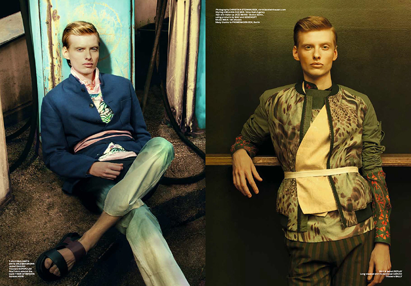 M4 model Iwan Zalewski channels his dandy side in a new cover shoot for the 60th issue of J’N’C magazine. Lensed by fashion photographer Christian Steinhausen, the story features Iwan styled by Adelaida Cue Bar (Nina Klein). Rocking bold, eclectic styles, Iwan brings endless fun in layers featuring Paul Smith, Versus Versace, Scotch & Soda, Tiger of Sweden and more. / Grooming by Jazz Mang (Basics Berlin) using M.A.C. Cosmetics and Gegengift Products.