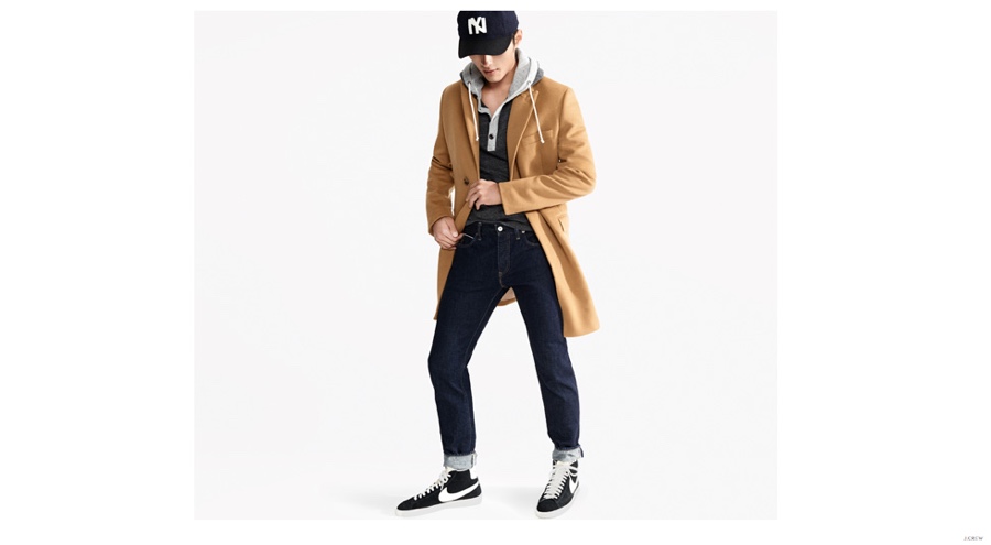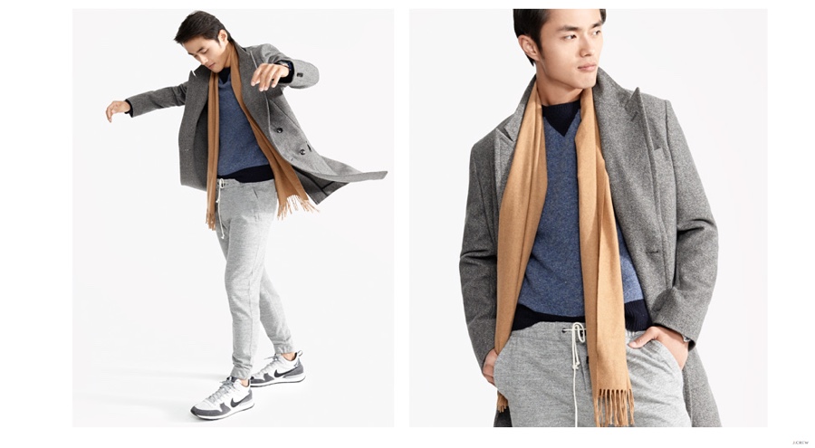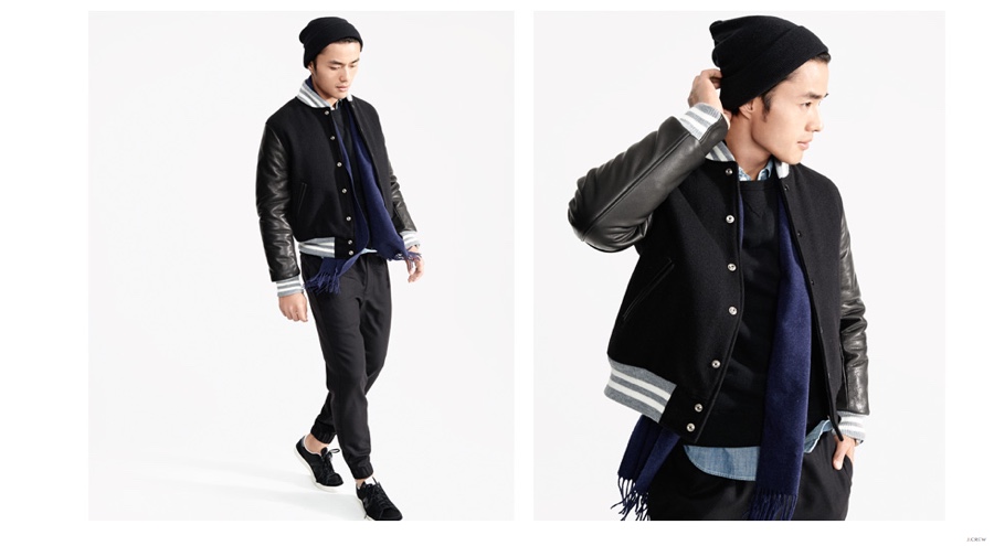 Smart Athletic Fashions-After kicking off fall with great transitional styles, Chinese model Zhao Lei reconnects with J.Crew for a new men’s guide. This time around, showing athletic-inspired styles, Zhao is a casual but chic vision. Taking a smart approach to everyday style, J.Crew takes items like the always popular jogger and lends the essential a slim fit that can easily be paired with a tailored overcoat or a pullover. Meanwhile, gray jersey hooded sweatshirts are another comfortable staple. Easily elevated, the item is styled with a charcoal blazer and pair of dark wash denim jeans. Shop the featured styles at JCrew.com.