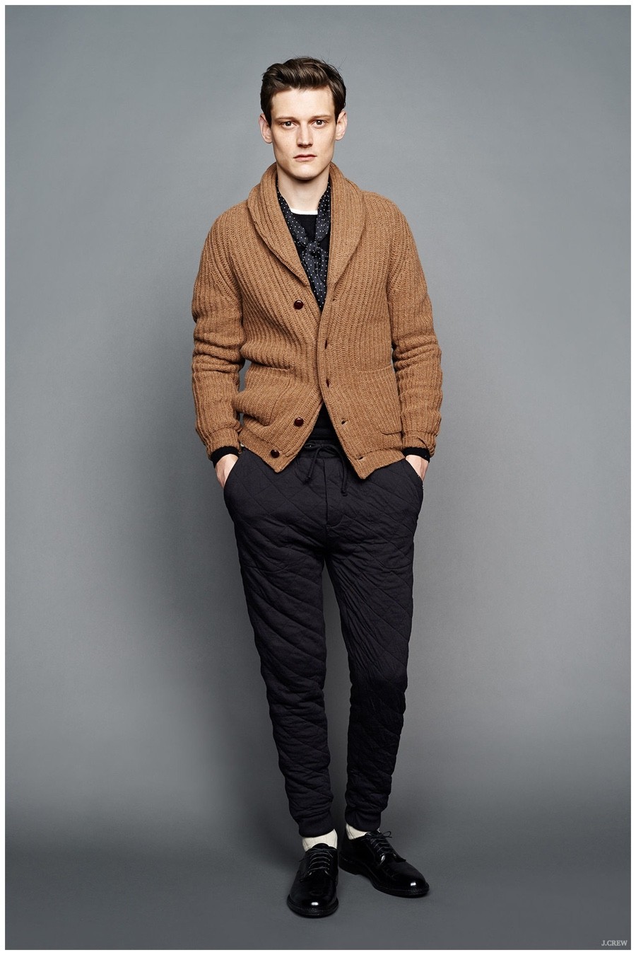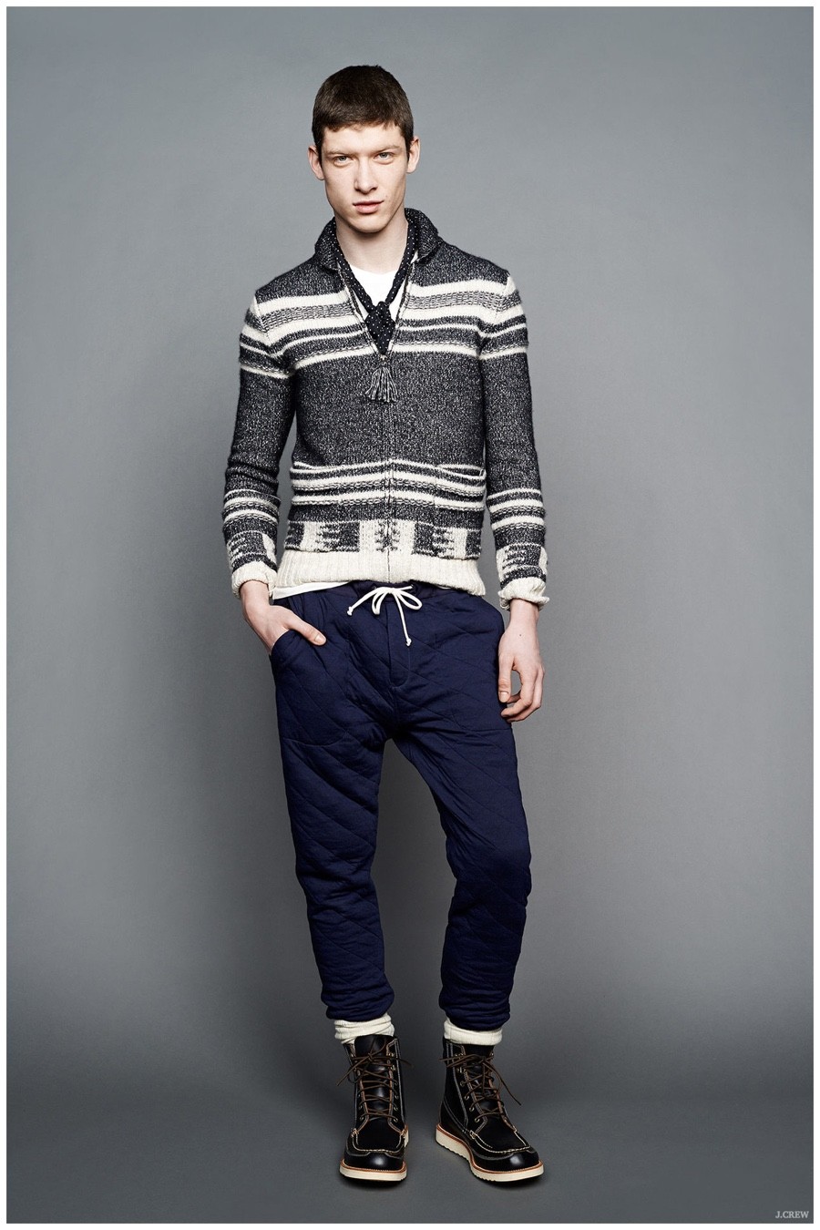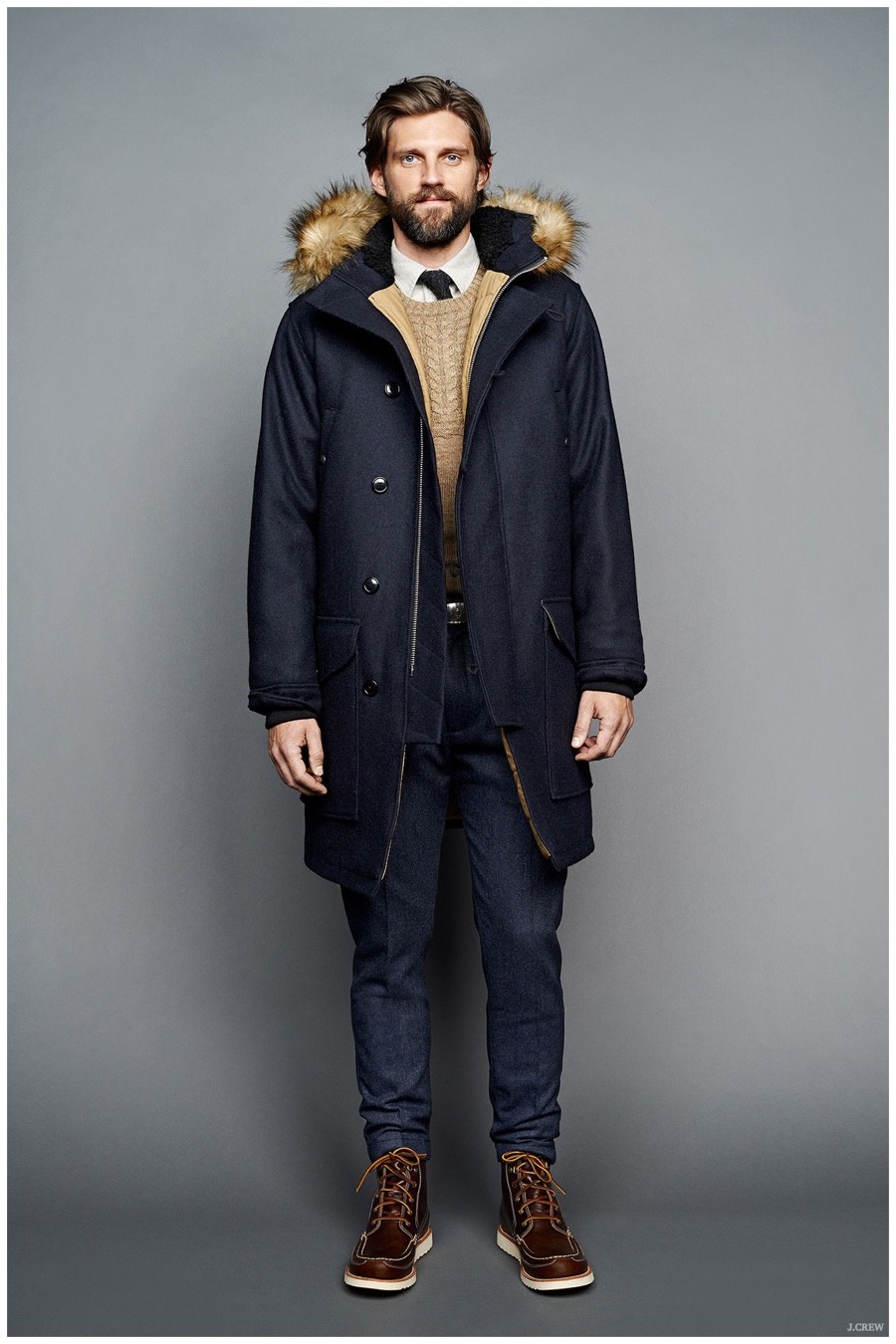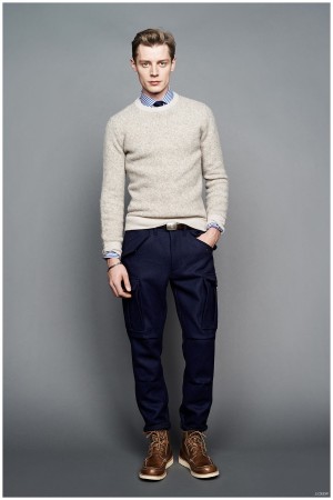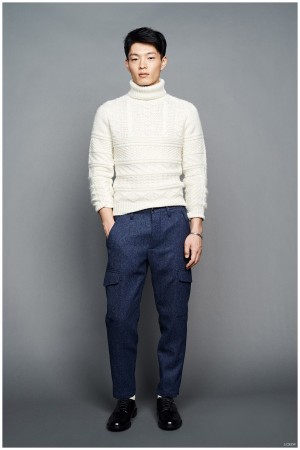 Unveiling its fall-winter 2015 menswear collection during New York Fashion Week, J.Crew revisited American sportswear classics. Laying out a sharp selection of pieces that would contribute to any versatile wardrobe, the brand served up a stylish experience. Shawl neck cardigans and cable-knit sweaters were layered with trendy shearling jackets and tailored blazers. Embracing slim lines, trousers, cargo pants, quilted joggers and denim jeans guarantee a style option for all occasions. Paired with mountaineering boots, New Balance sneakers and dress shoes, J.Crew’s fall collection is a fashionable must.