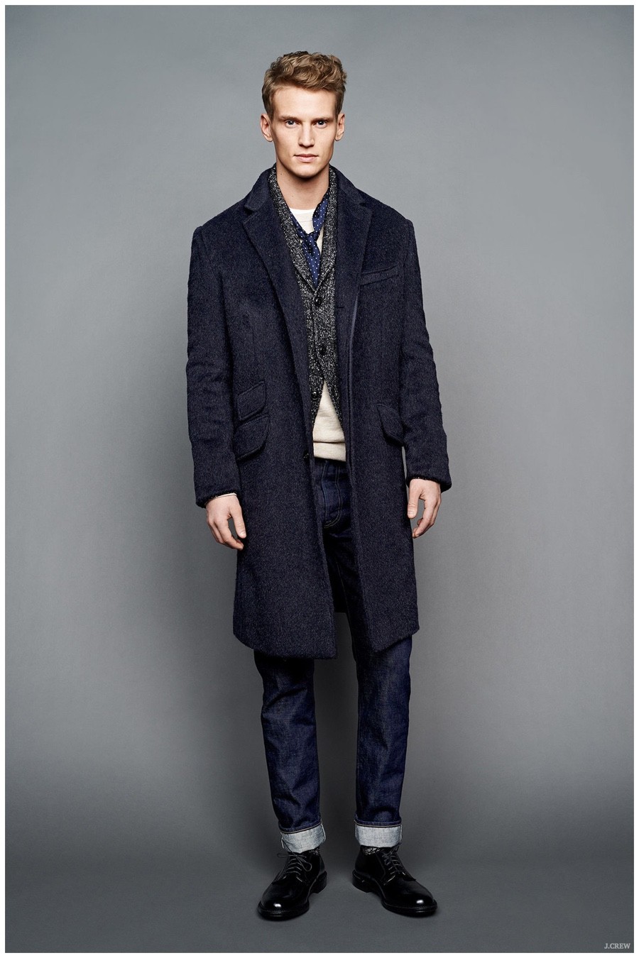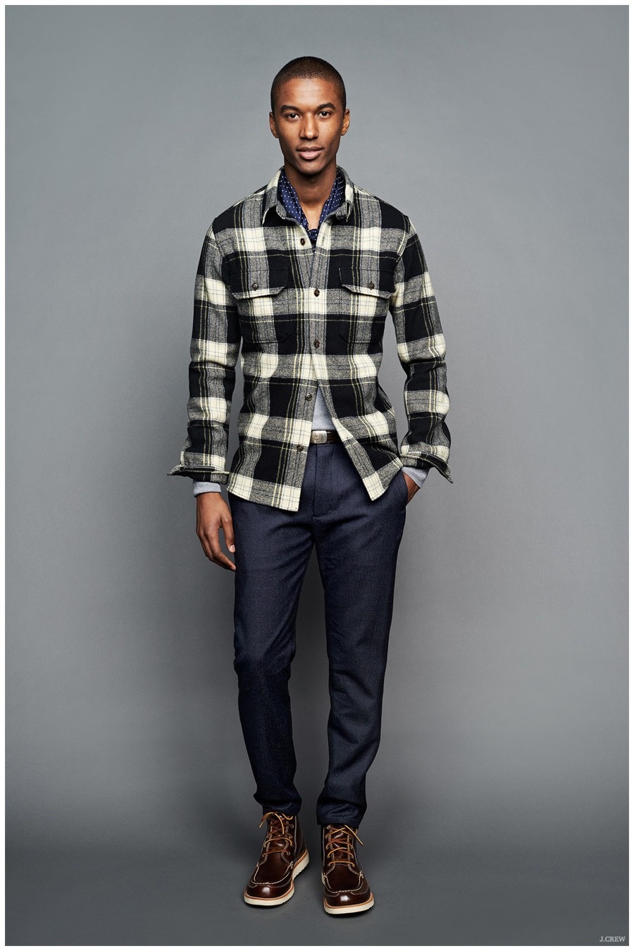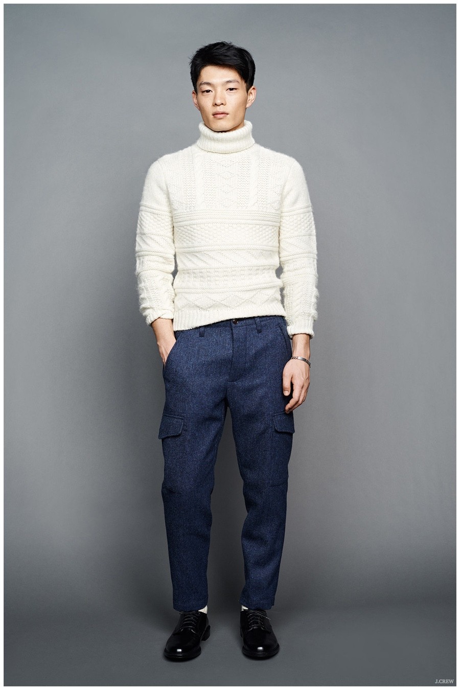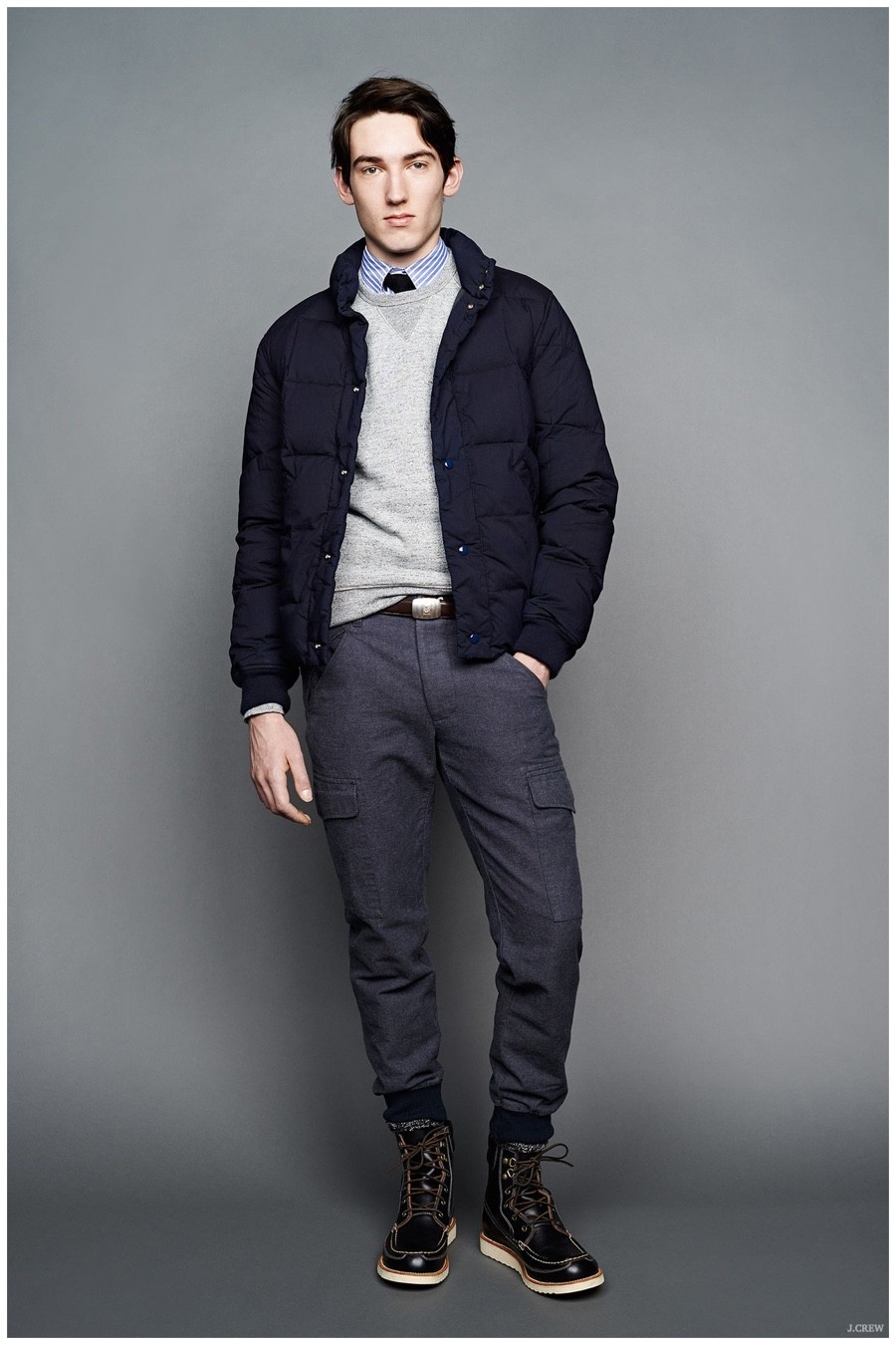 Unveiling its fall-winter 2015 menswear collection during New York Fashion Week, J.Crew revisited American sportswear classics. Laying out a sharp selection of pieces that would contribute to any versatile wardrobe, the brand served up a stylish experience. Shawl neck cardigans and cable-knit sweaters were layered with trendy shearling jackets and tailored blazers. Embracing slim lines, trousers, cargo pants, quilted joggers and denim jeans guarantee a style option for all occasions. Paired with mountaineering boots, New Balance sneakers and dress shoes, J.Crew’s fall collection is a fashionable must.