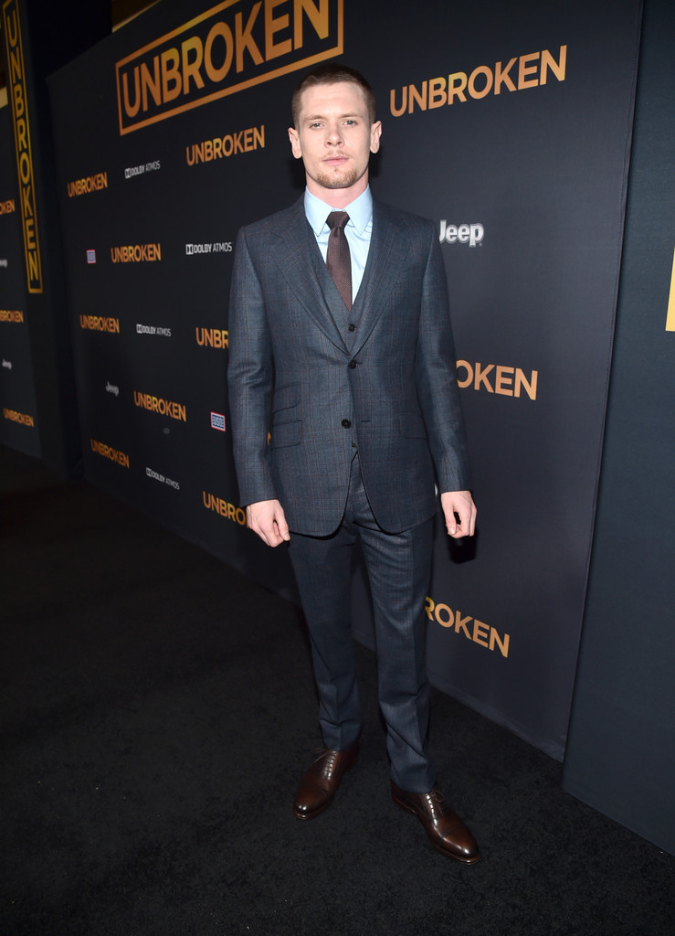 Attending the Hollywood premiere of ‘Unbroken’ on December 15th, actors Jack O’Connell and Garrett Hedlund were at their sartorial best in suits from Italian label Gucci. O’Connell wore a three-piece, blue-gray wool Gucci Marseille suit, while Hedlund sported a double-breasted gray Gucci Made to Order Signoria suit.