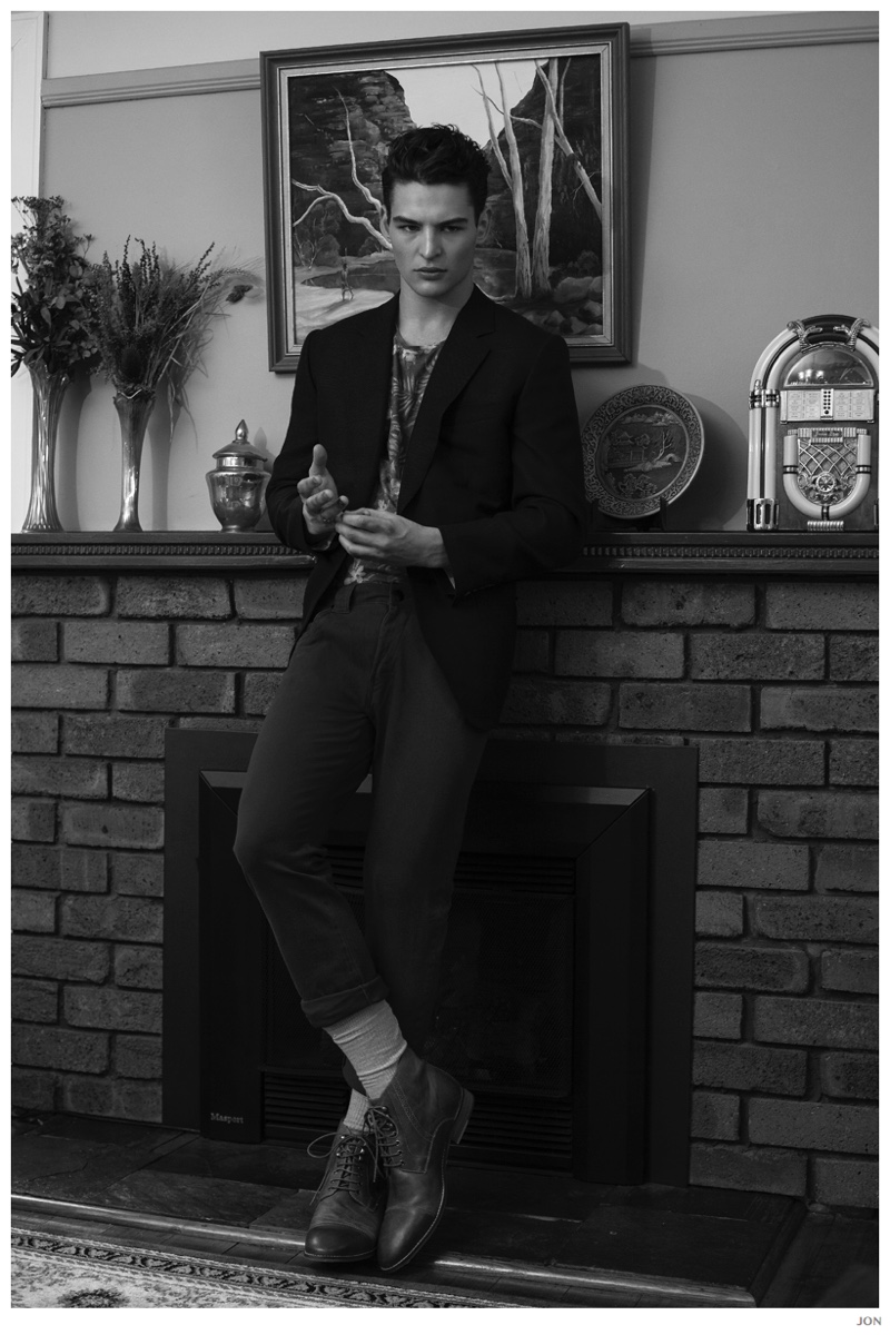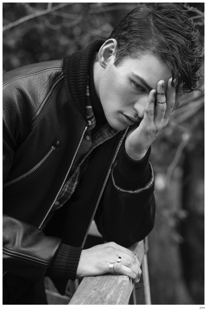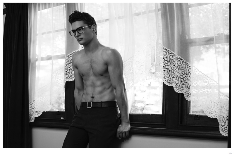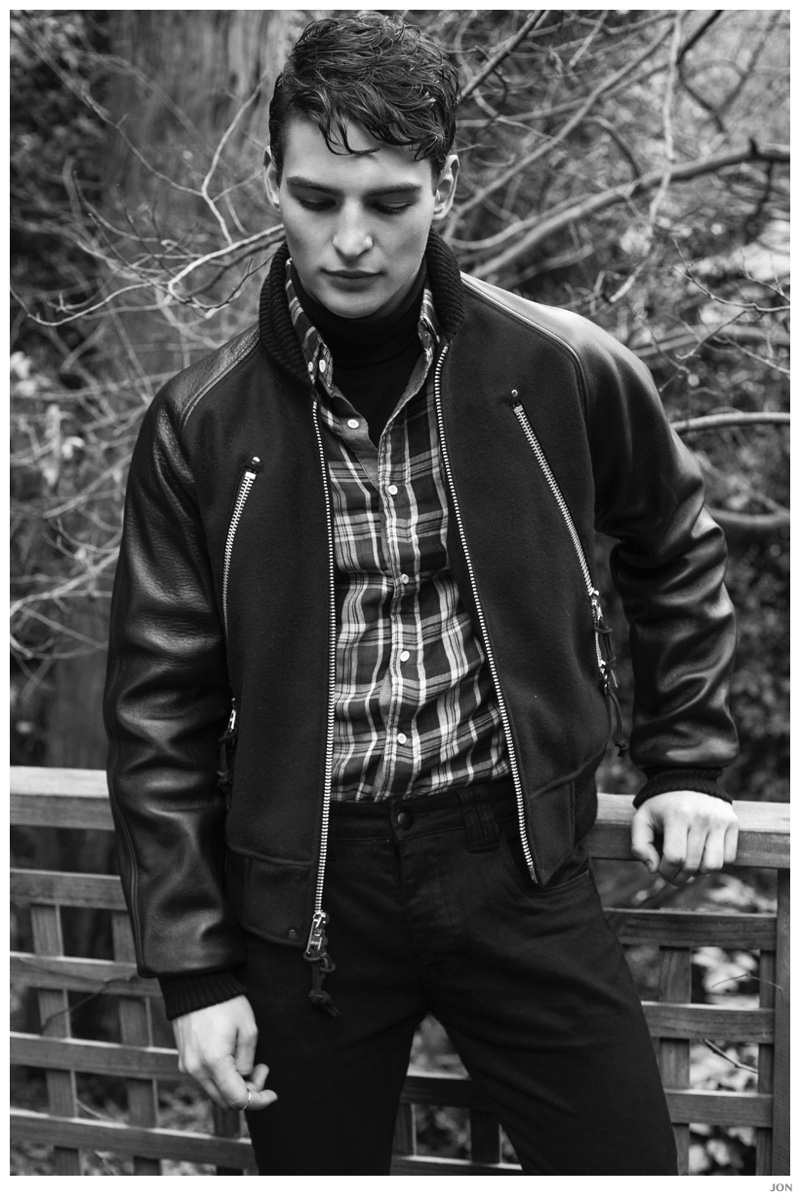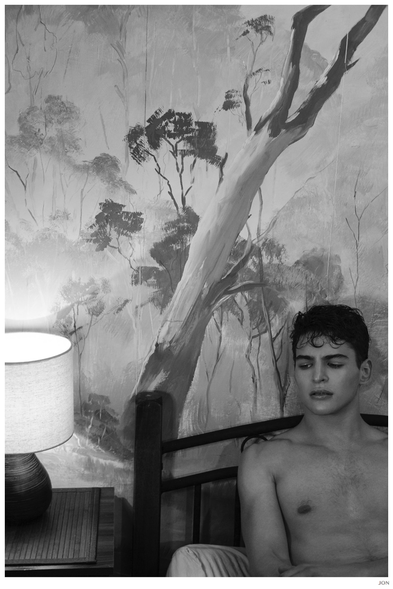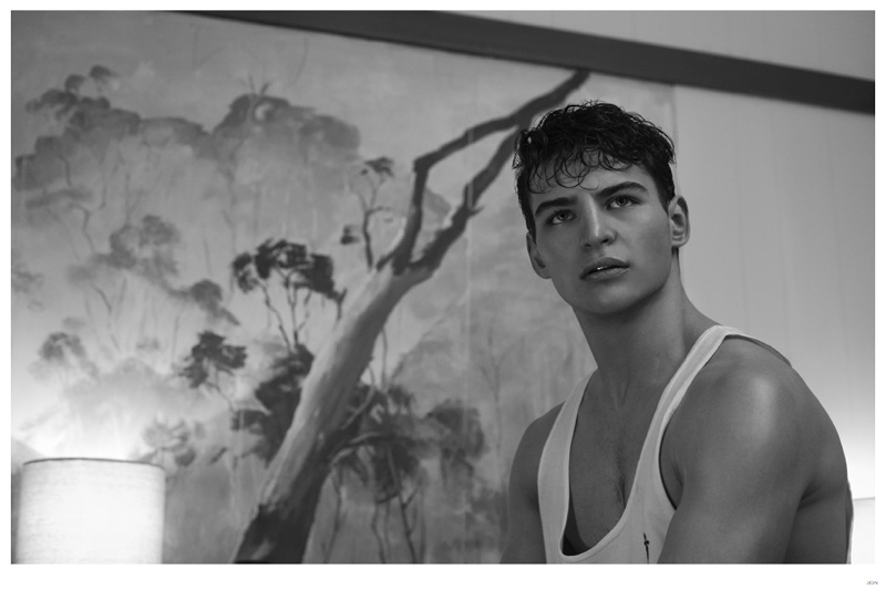 Mister Lonely-London Mgt model Jackson is front and center for JON magazine. Starring in a black & white editorial lensed by photographer Mikey Whyte, Jackson charms the camera in quiet but strong images that benefit from a wardrobe of staples styled by Ross McCallum. / Grooming by Wanda Waller.