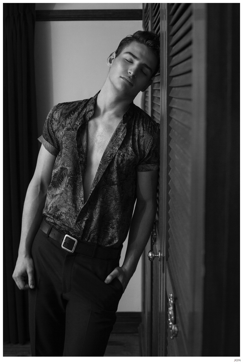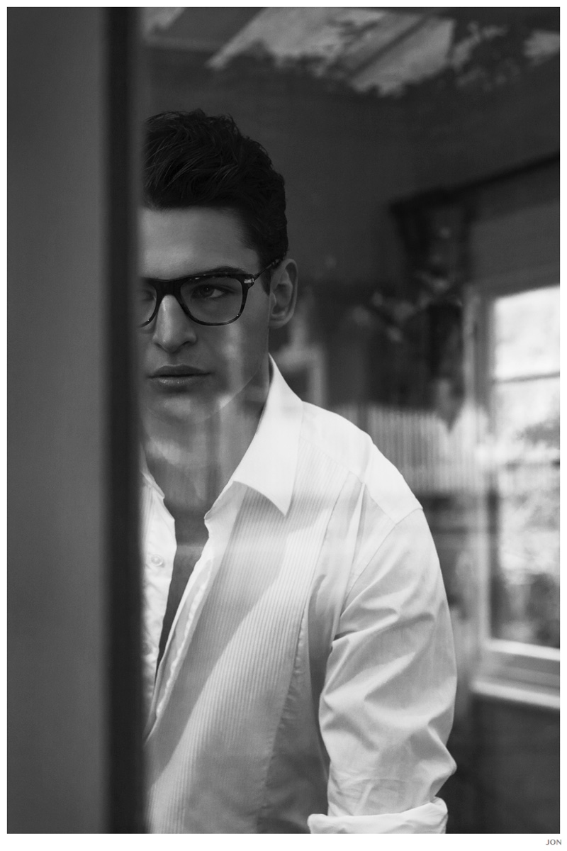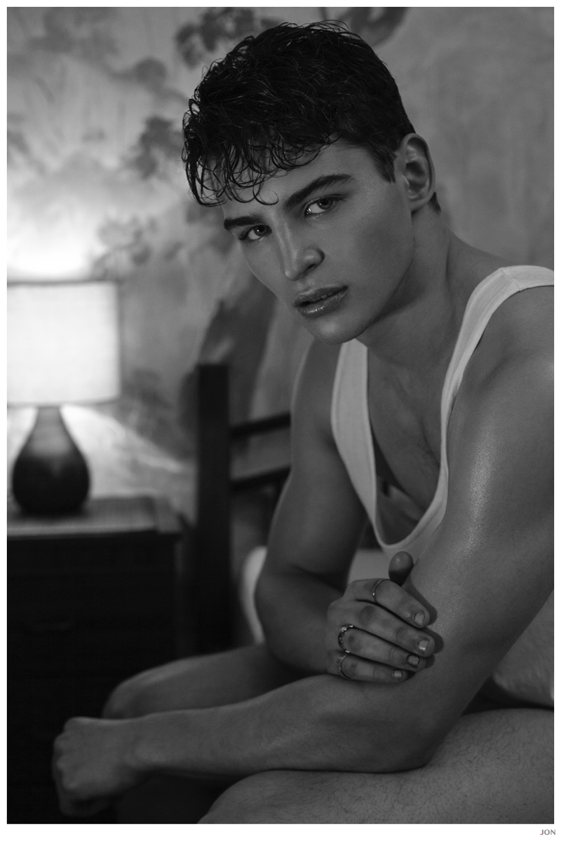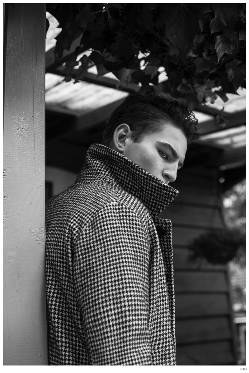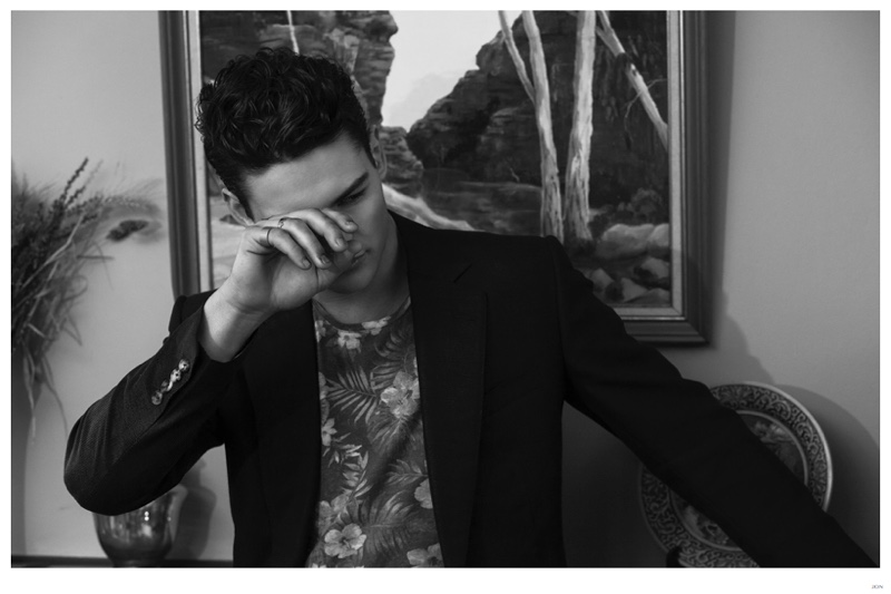 Mister Lonely-London Mgt model Jackson is front and center for JON magazine. Starring in a black & white editorial lensed by photographer Mikey Whyte, Jackson charms the camera in quiet but strong images that benefit from a wardrobe of staples styled by Ross McCallum. / Grooming by Wanda Waller.