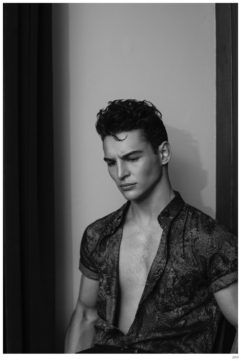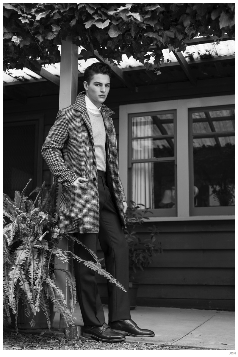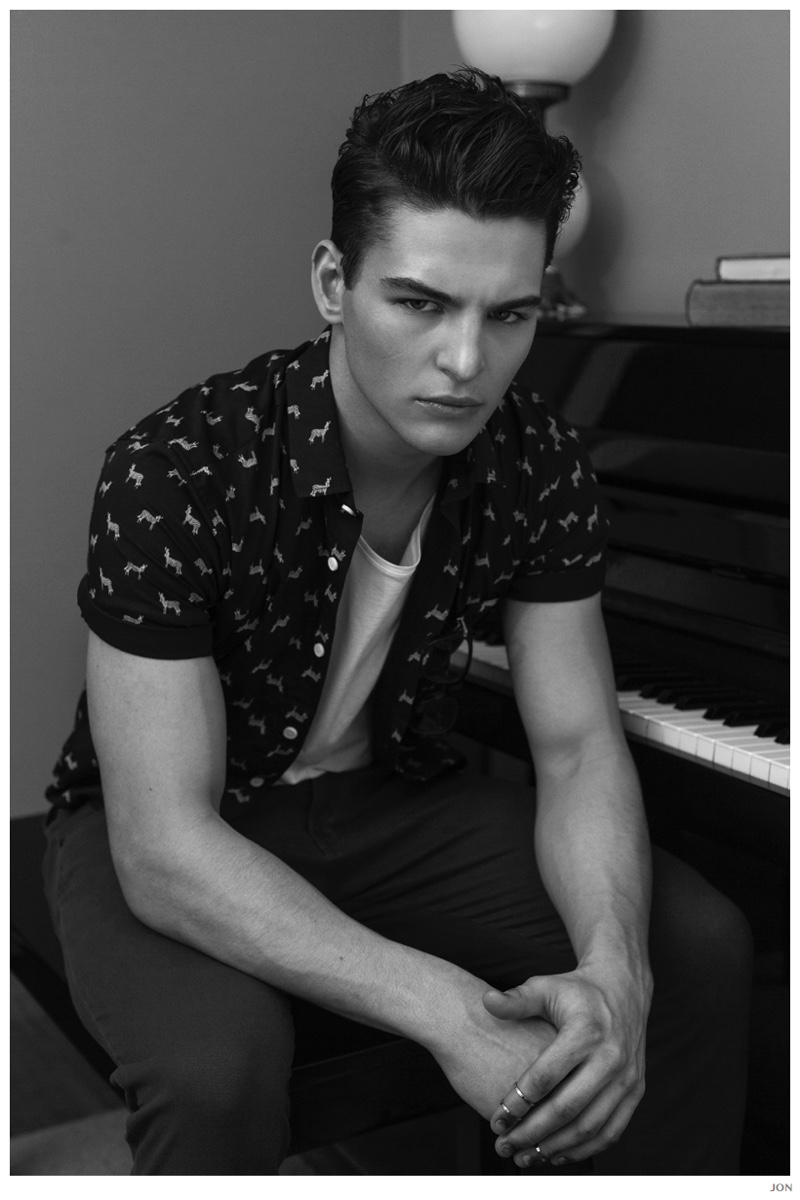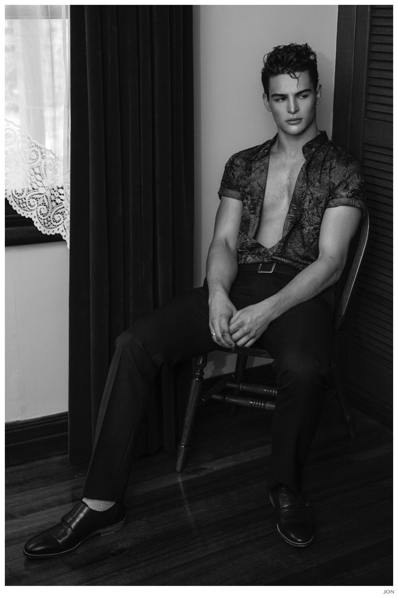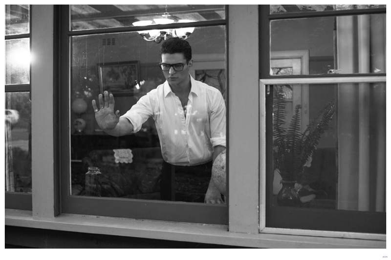 Mister Lonely-London Mgt model Jackson is front and center for JON magazine. Starring in a black & white editorial lensed by photographer Mikey Whyte, Jackson charms the camera in quiet but strong images that benefit from a wardrobe of staples styled by Ross McCallum. / Grooming by Wanda Waller.