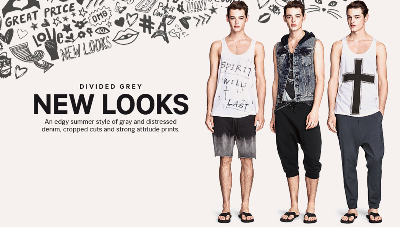 Divided Grey-American model Jacob Morton reconnects with H&M after May’s outing to showcase the latest arrivals from Divided Grey. Continuing a rebellious youthful spirit, the latest garments are perfect for making the transition between summer and fall. Here, slouchy tanks with gritty graphics come together with ripped denim, 3/4 length joggers, gradient treated apparel and more.