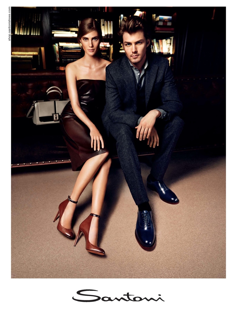 Young Love–American model Jake Madden joins Lindsay Lullman for the fall/winter 2013 campaign of Italian footwear label Santoni. Representing a young refined couple captured in their home, the pair are photographed by Lachlan Bailey and styled by Giovanna Battaglia in the library of The NoMad Hotel.
