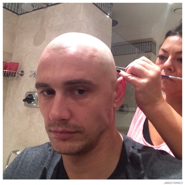 James Franco Goes Bald-Unsurprisingly, given his media antics, actor James Franco lives an interesting life and his acting roles match. After turning heads with a blond hair do, Franco is now bald. The actor went bald for his role in the film adaptation of Steve Erickson’s book ‘Zeroville’. Love it? Hate it? Oh, but we do love those Gucci sunglasses…