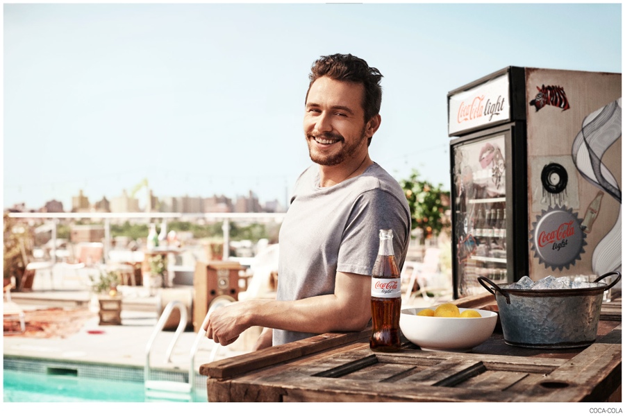 James Franco for Coca-Cola Light-Adding to his duties as Gucci brand ambassador, actor, artist, director, etc. James Franco stars in a campaign for Coca-Cola Light. For the advertising images, Franco was shot by David Fischer in New York City, enjoying a warm summer day overlooking Manhattan’s skyline. In an accompanying video interview, Franco talks about what he finds sexy, his social media antics and his fantastic life. Watch the video below.