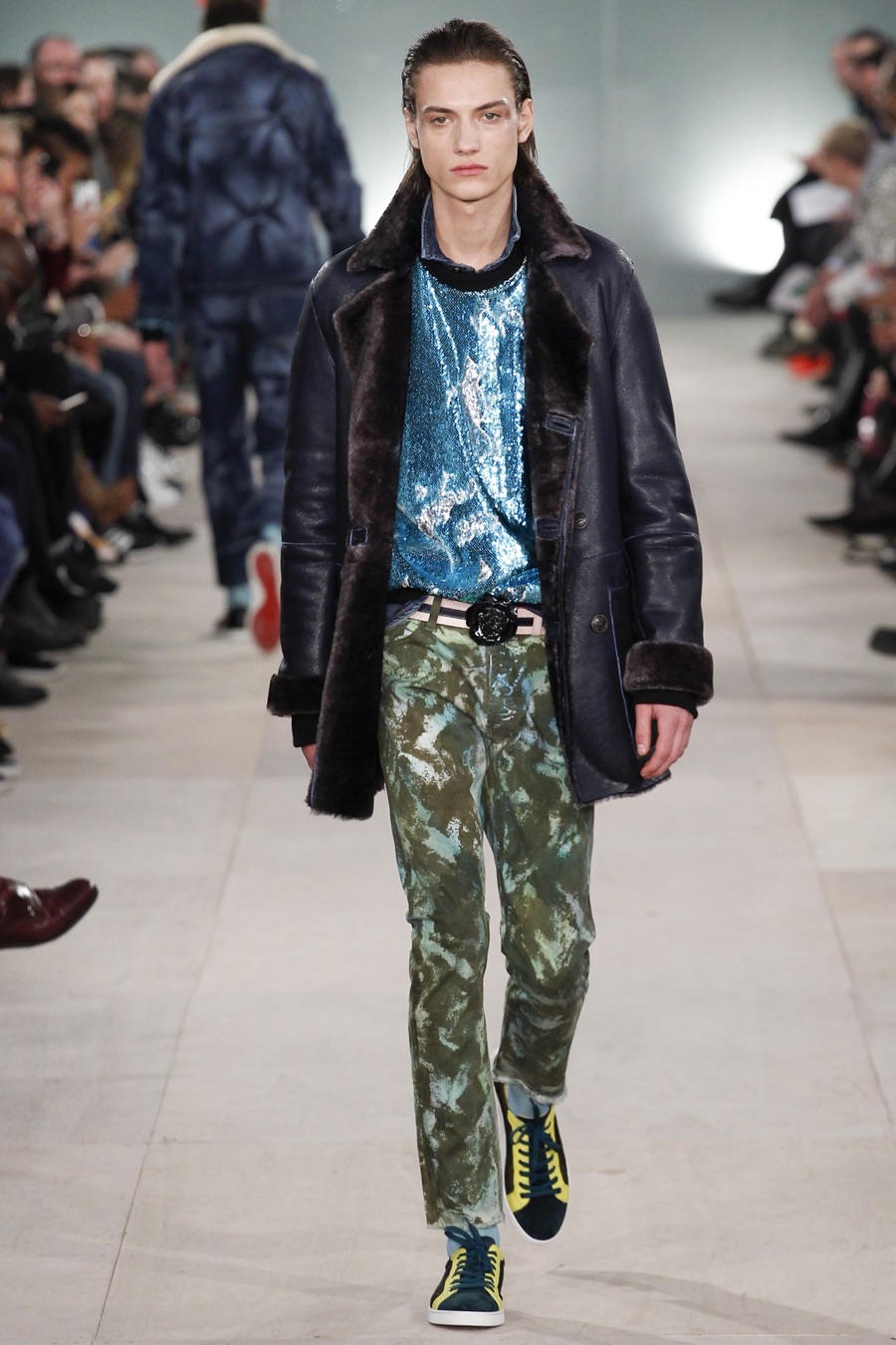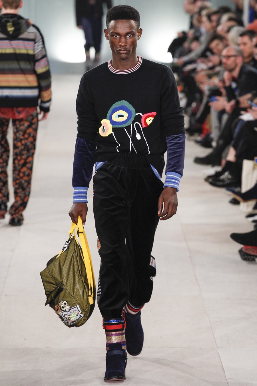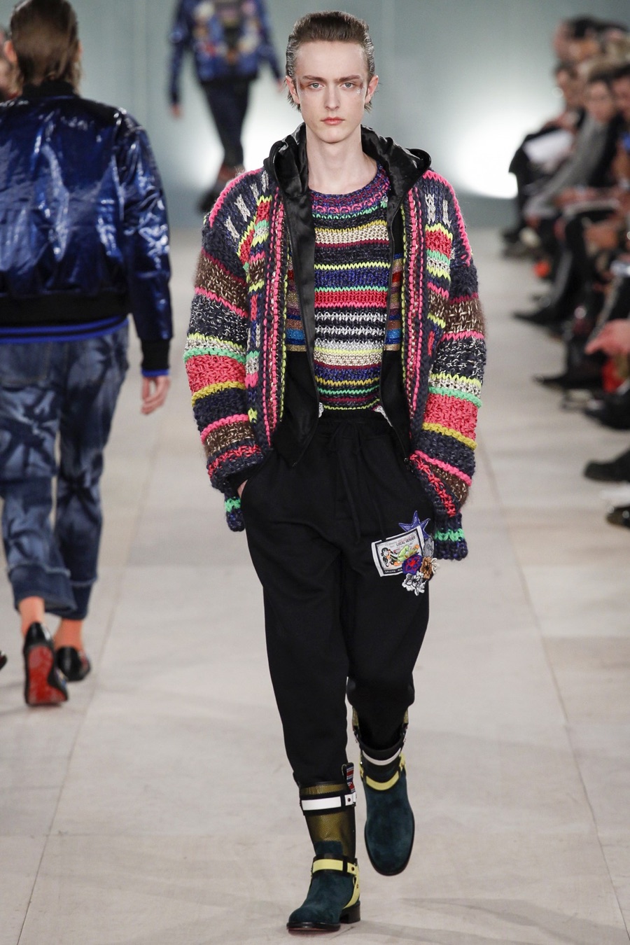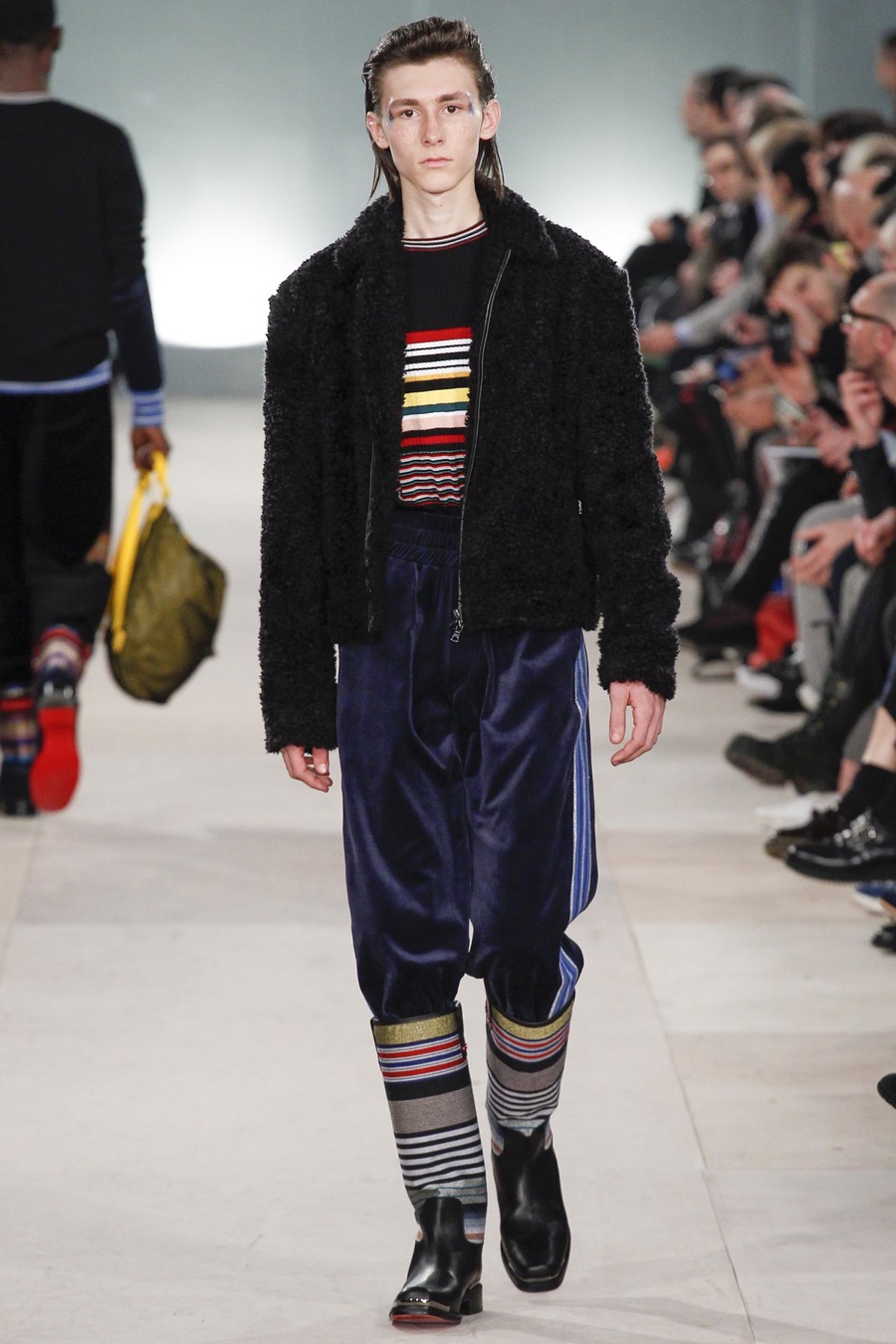 Fusing an artist’s sensibility with a keen eye for sporty separates, the new collection can be summed up as an exciting wardrobe that lends the season an extra punch. Oversized parkas, short jackets, accented with shearling and bomber jackets were paired with striped knitwear, straight-cut patterned pants and trendy joggers. Walking on the more quiet side, shearling jackets and coats contributed to an accessible, luxurious appeal.