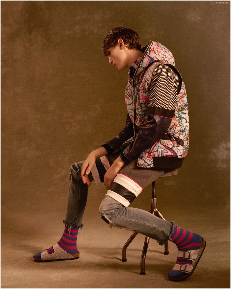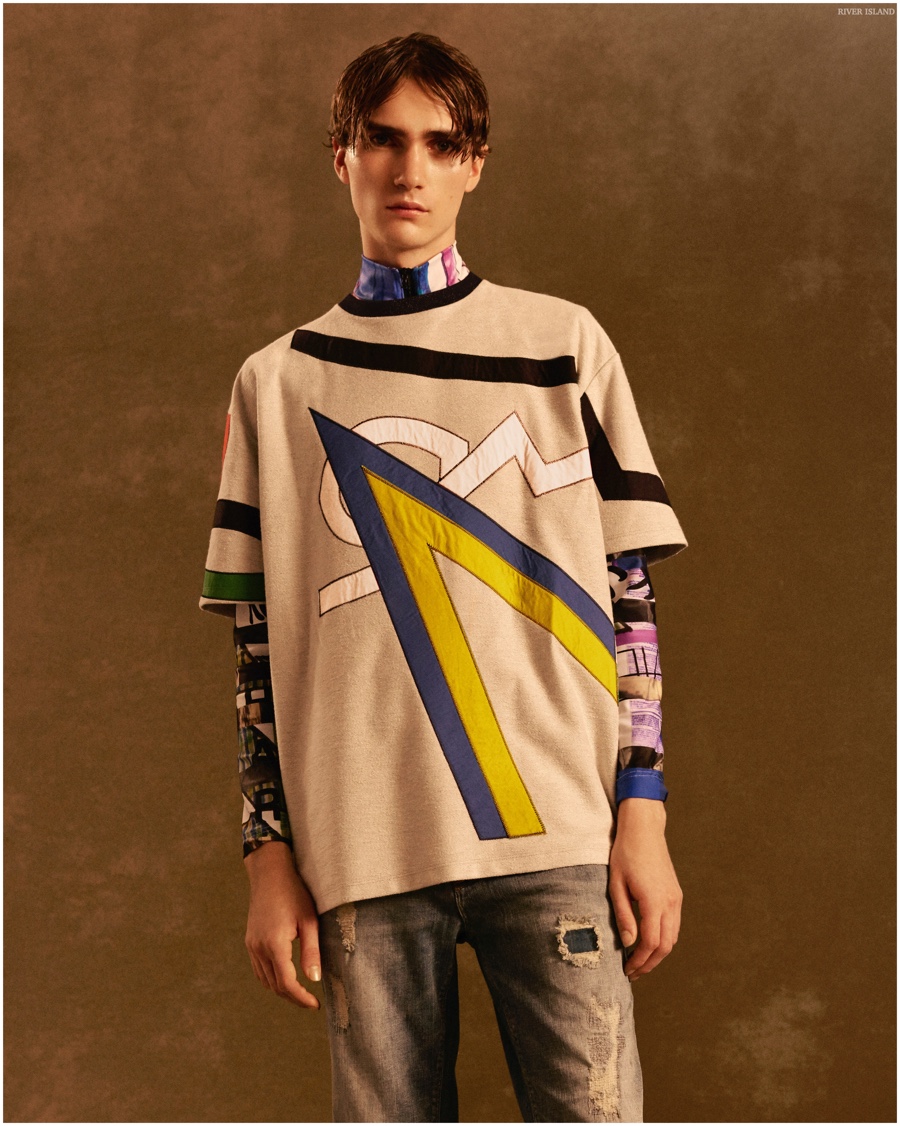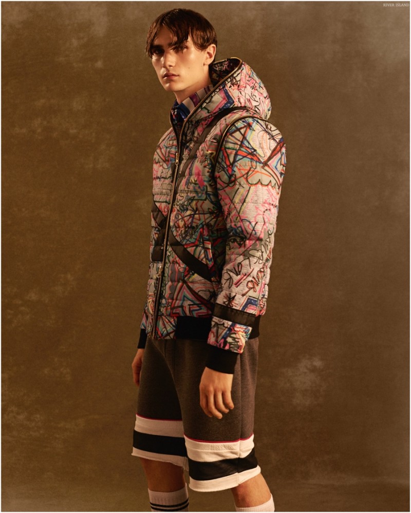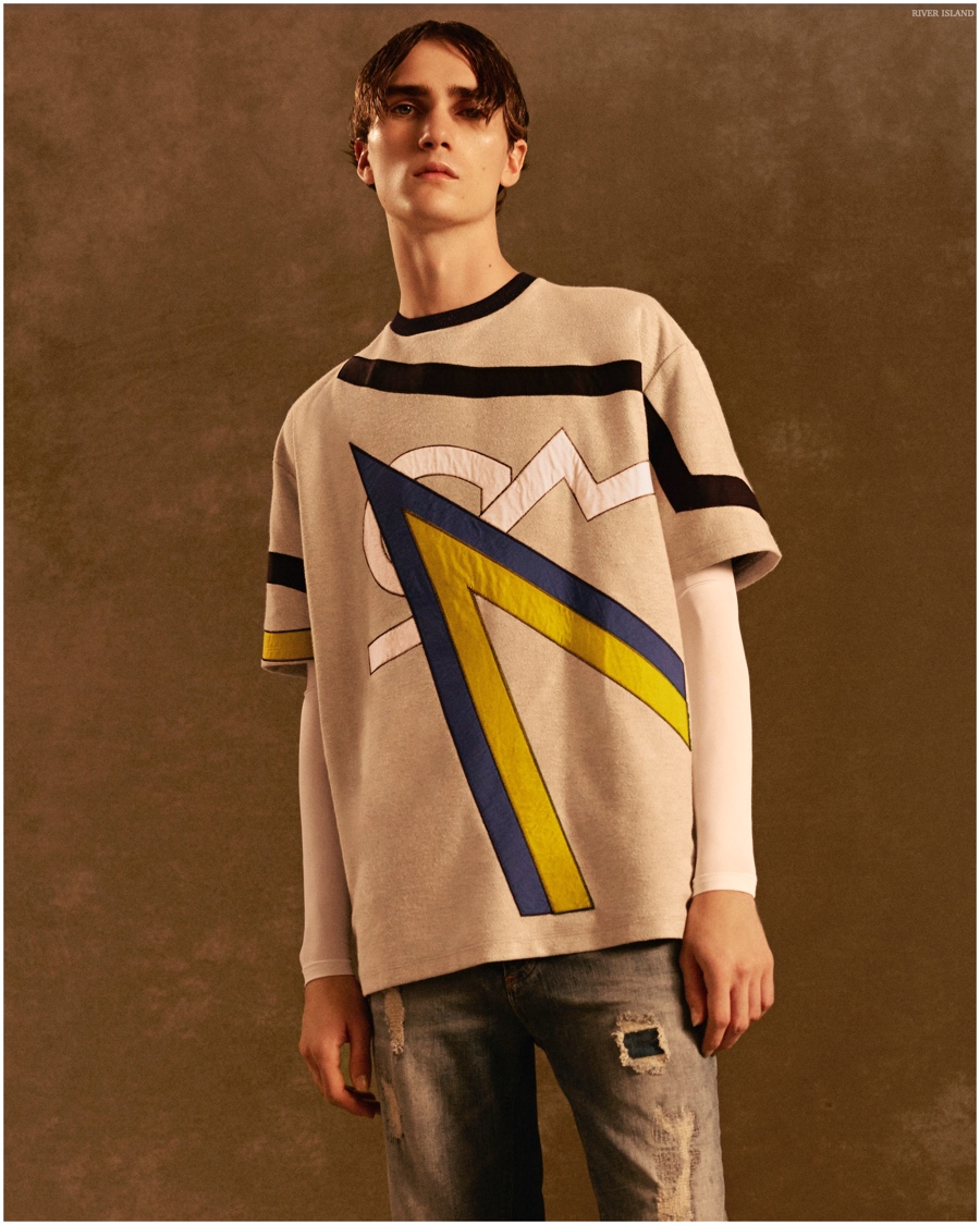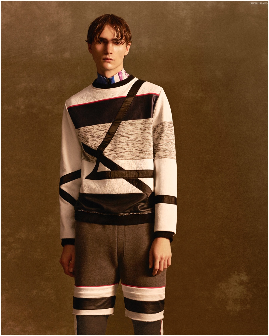 River Island collaborates with designer James Long for spring’s edition of its Design Forum. Featuring the “10-strong collection” with a new campaign starring Gryphon O’Shea, River Island highlights the collaboration which launches in-stores and online February 24, 2015. Long’s pieces deliver a sporty, youthful flair with casual apparel dressed in kaleidoscopic prints and futuristic textures.