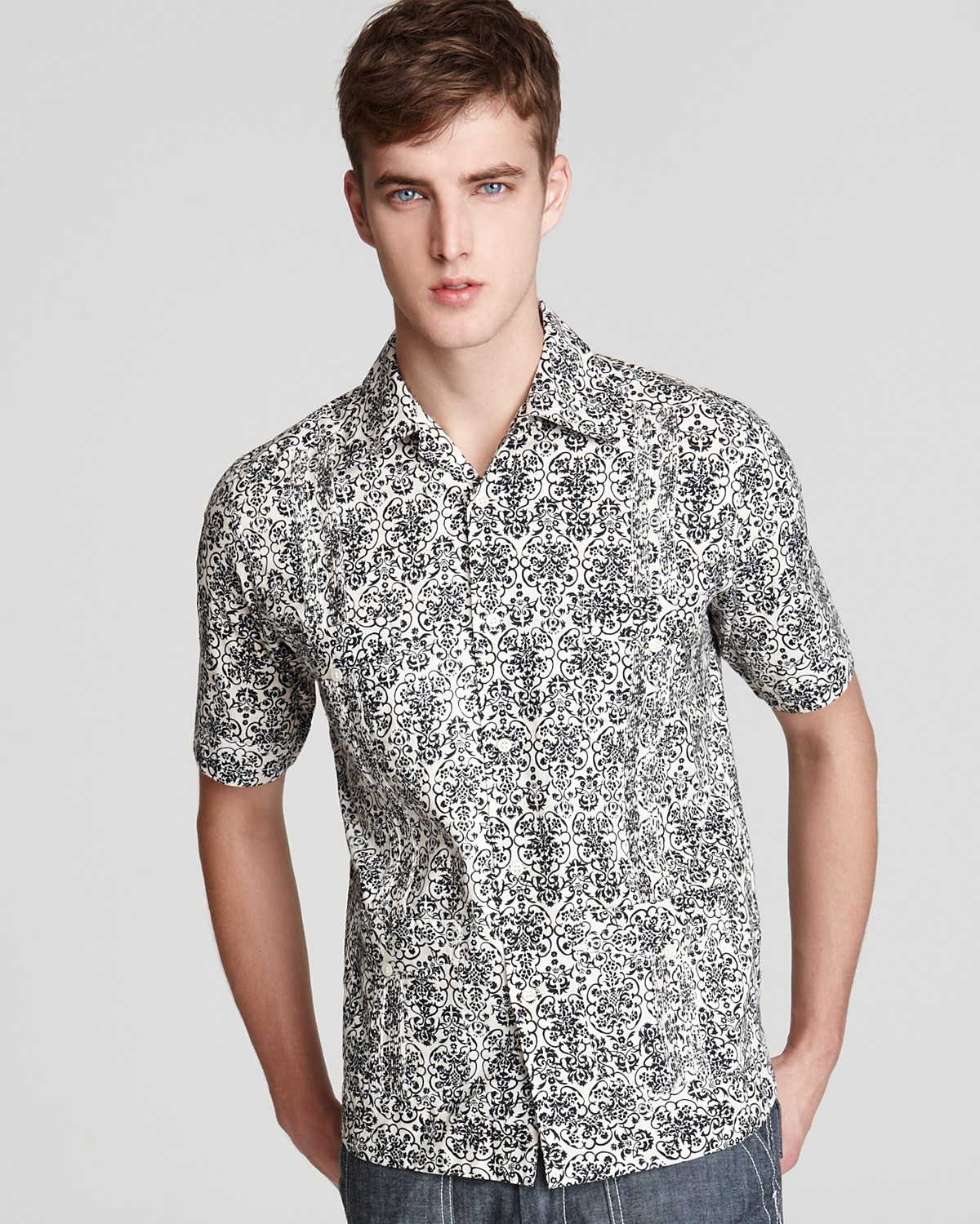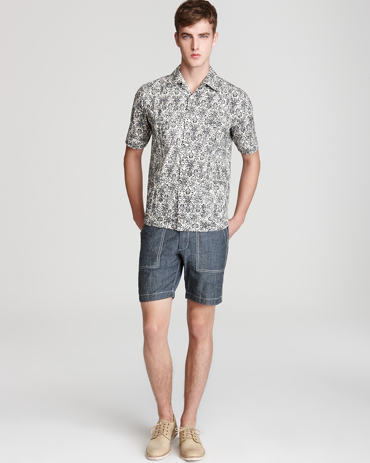 A Singular Attitude for Fashion-Decked out in a wardrobe influenced by different seasonal trends, Wilhelmina model James Smith is enlisted by luxury department store Bloomingdale’s to display part of its summer 2013 offering. Focusing on the more comfortable and functional facet of summer fashion, the blond model easily wears short-sleeved shirts, embellished with elaborate patterns or ethno inspired motifs, colorful trousers, washed jeans or sporty oriented garments, like soft hoodies and baseball tees, perfectly balancing comfort with a relaxed sense of style.