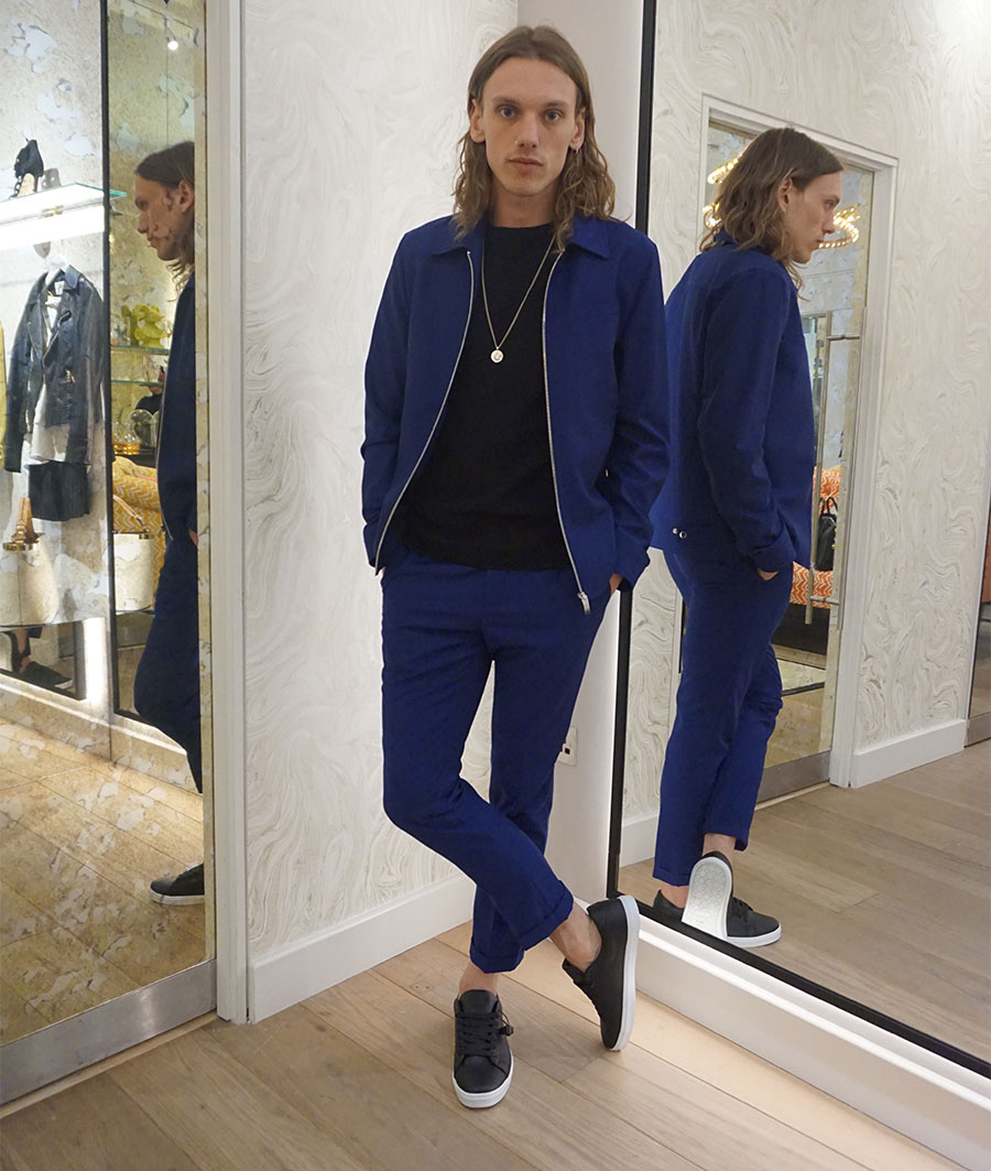 Jamie Campbell Bower Embraces Black & Blue Style, Rocks River Island