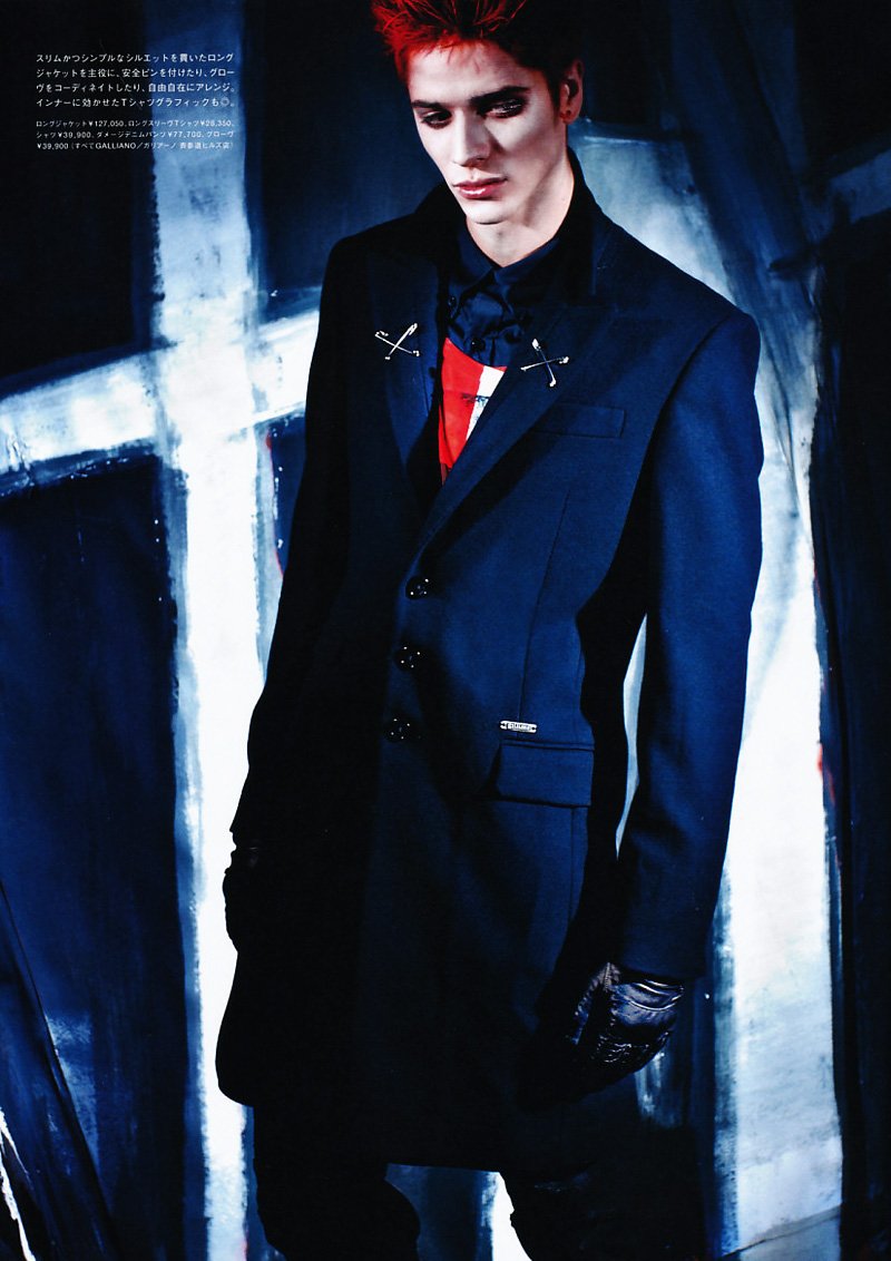 Breaking all the rules in true Galliano fashion, Jamie Conday gets a fiery red makeover for Dazed & Confused Japan. Dressed in Galliano’s new line, Jamie is enveloped by a dark world captured with the help of stylist Anna Trevelyan.