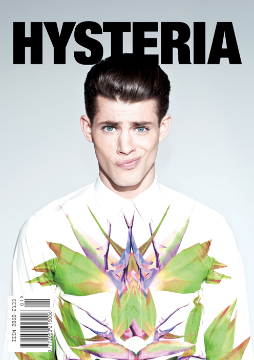 Cover Youth–In celebration of their first series of print magazines, Hysteria enlists Jamie Wise (FM), Hadleigh (Nevs), and Jordan (Select) to cover their summer issue. Photographers Simon Harris and Emma Gibney capture the youthful essence and spontaneity of the fresh faces. Stylist Mervyn Boriwondo returns to outfit the boys in a range of colors and graphics that reflects the raw edge of the young talent. / Hair by Soichi Inagaki, Kaz, & Ala Hotjat. Makeup by Barrie Griffith & Ala Hojat.