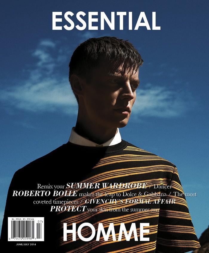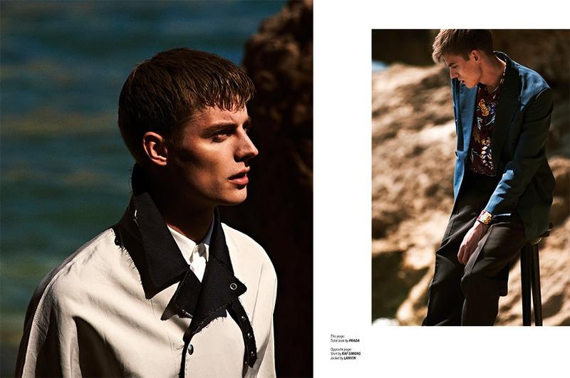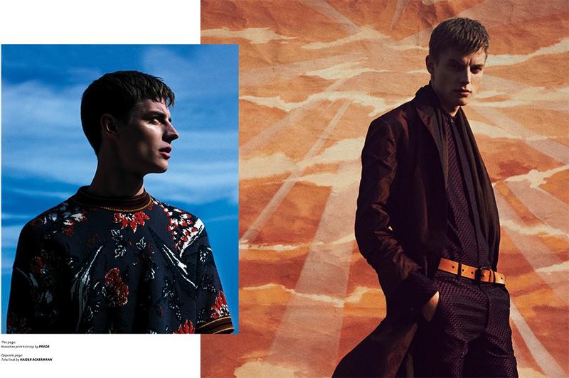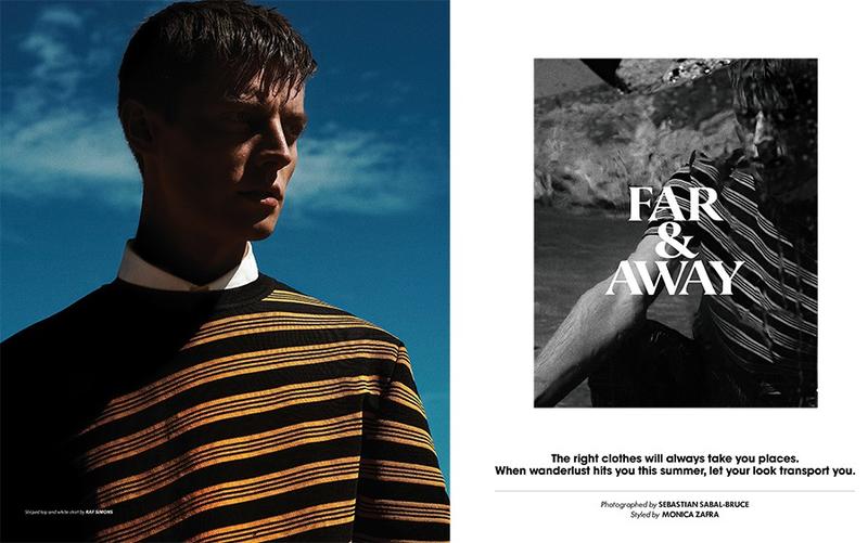 Far & Away–For its latest issue and revamped cover, Essential Homme tapped model Janis Ancens for an editorial with photographer Sebastian Sabal-Bruce. Venturing outdoors for a magical summer shoot, Janis was captured against crisp blue skies. Wearing fashions from Raf Simons, Prada, Hadar Ackermann and other labels, Janis was styled by Monica Zafra.