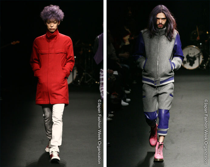 rapping up coverage of Japan Fashion Week are labels Lessthan, Garçonshinois, and Junya Tashiro. It is no surprise that Lessthan’s Ohal Ando is a go-to designer for musicians. Lessthan’s fall collection takes an exciting turn when Ando brilliantly fuses regal purple with a juxtaposition of prep and urbanwear. Lessthan stands out in great contrast to the sleek minimalist collection by Garçonshinois. While Lessthan exemplifies eagerness and youth, Garçonshinois represents a somber seriousness with monochromatic formal pieces. Bridging the gap, Junya Tashiro presents a preview of his fall collection. The collection possesses a youthful appeal, while still maintaining a mature nature with stern pieces like the militaristic cape.