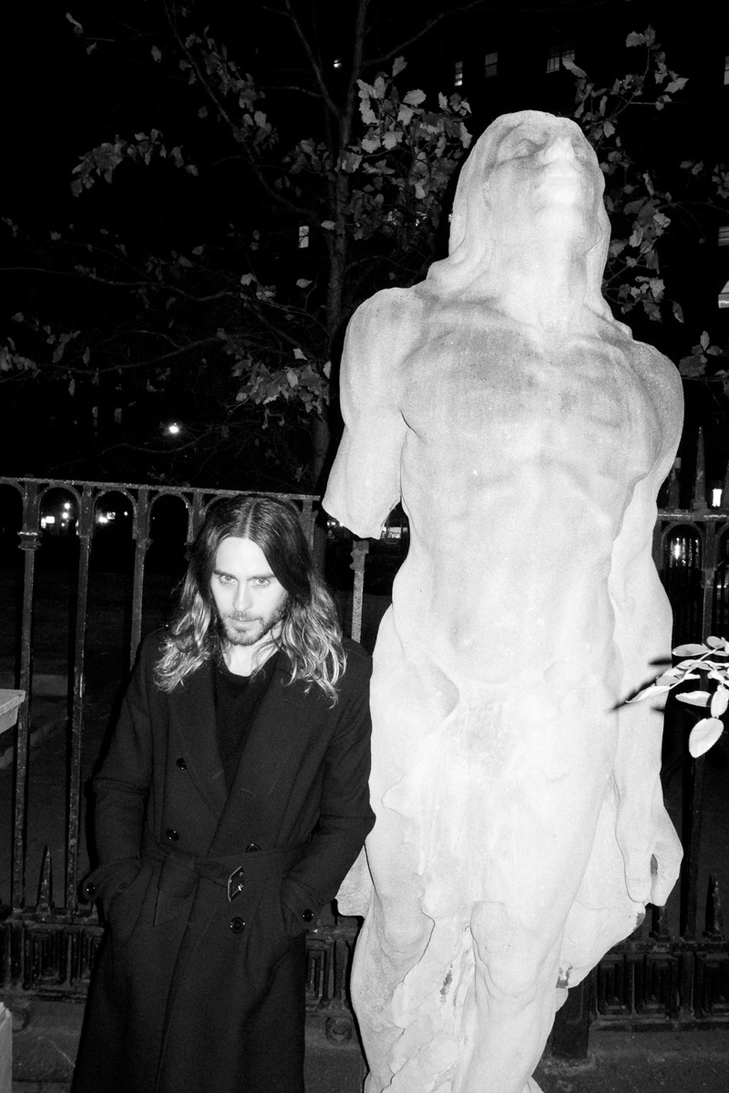 Jared + Terry–Actor and singer Jared Leto reconnects with photographer Terry Richardson on a recent trip to New York City for the premiere of Dallas Buyers Club. Having fun outdoors, Jared poses for an impromptu shoot in a striking black trench from Saint Laurent by Hedi Slimane. View Leto’s spread with his band Thirty Seconds to Mars for Fashionisto #9 here.