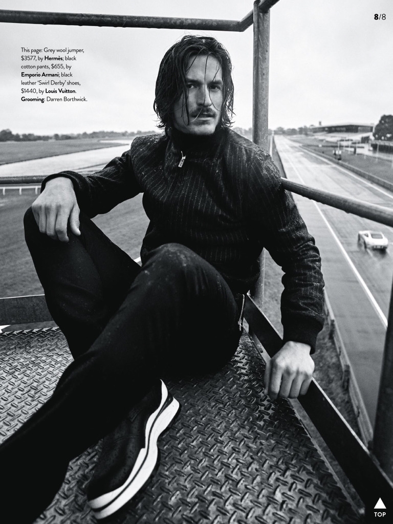 Following a nautical themed story earlier this year, Jarrod Scott returns to the pages of GQ Australia. Photographed by Jake Terrey, the Australian model appears in the magazine’s November 2015 issue. A racing narrative is front and center as Jarrod embraces moto-style fashions. Kelly Hume is at the helm of styling, outfitting Jarrod in great pieces from Valentino, Dior Homme and countless other labels.