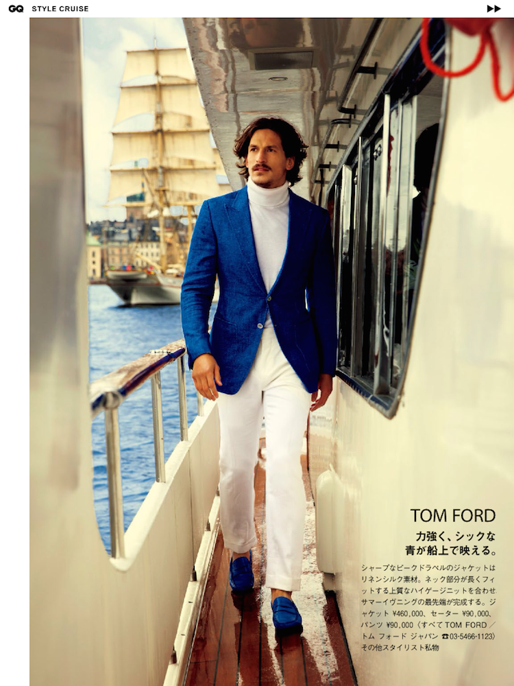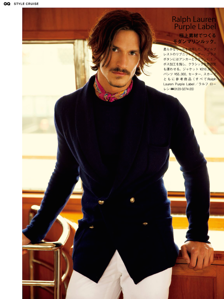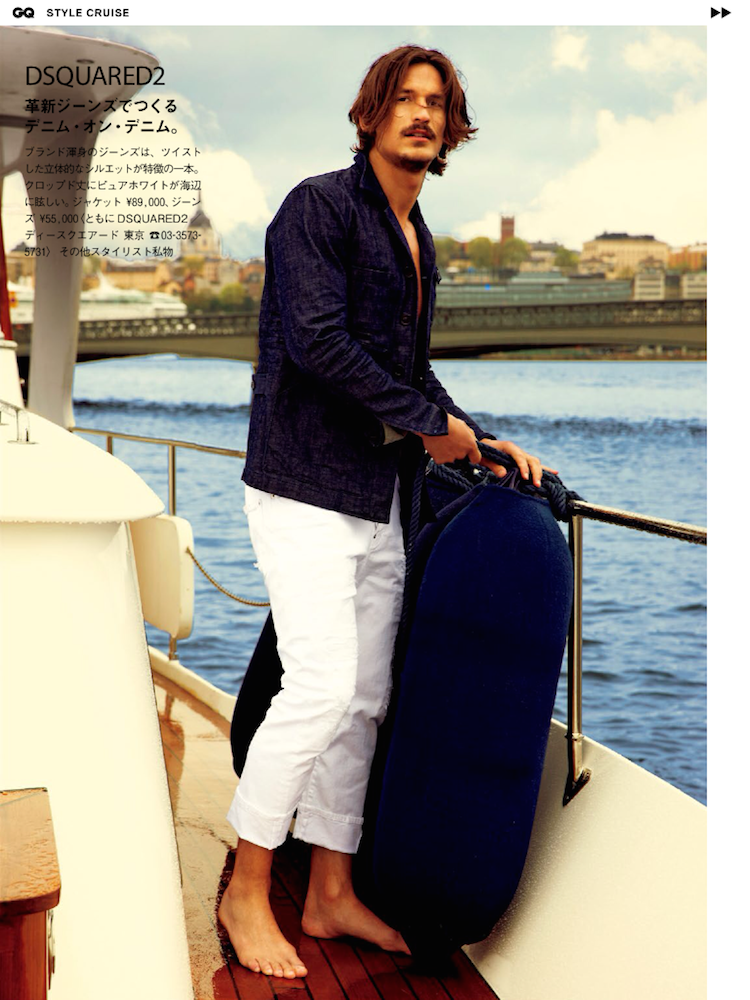 Cruising–Under Grant Pearce’s fashion direction, Australian model Jarrod Scott stars in a new story featured in the August issue of GQ Japan. Portrayed by photographer Arnaldo Anaya-Lucca, Jarrod is styled by Jacky Tam in a wardrobe deeply influenced by the always appealing nautical aesthetic.