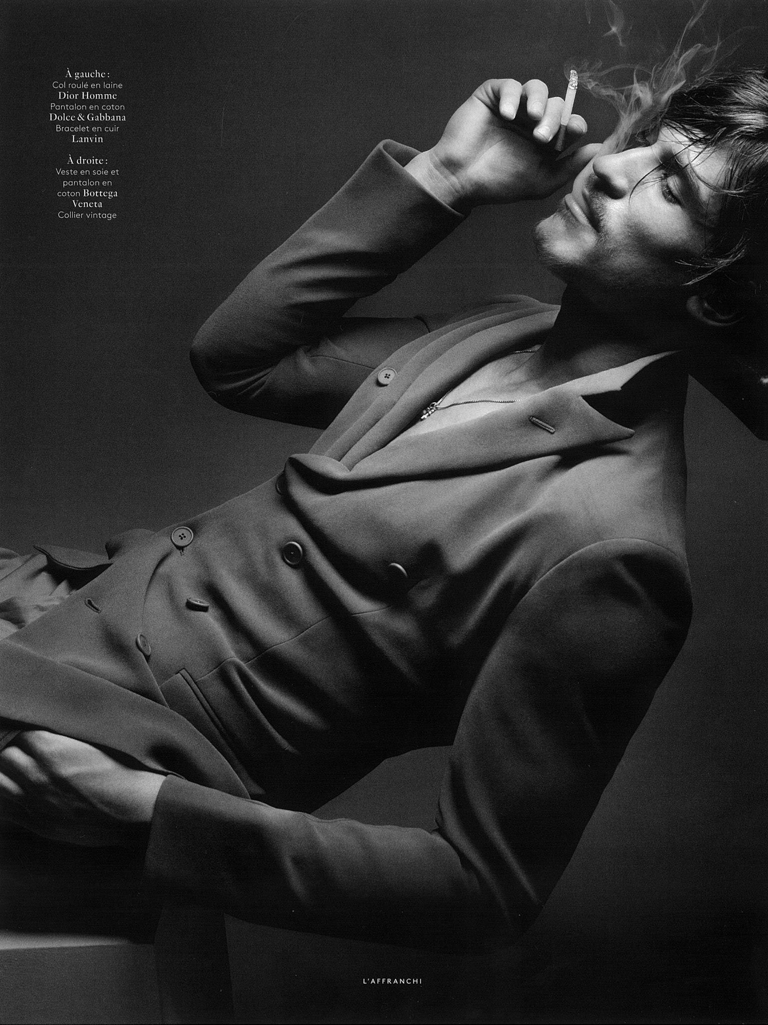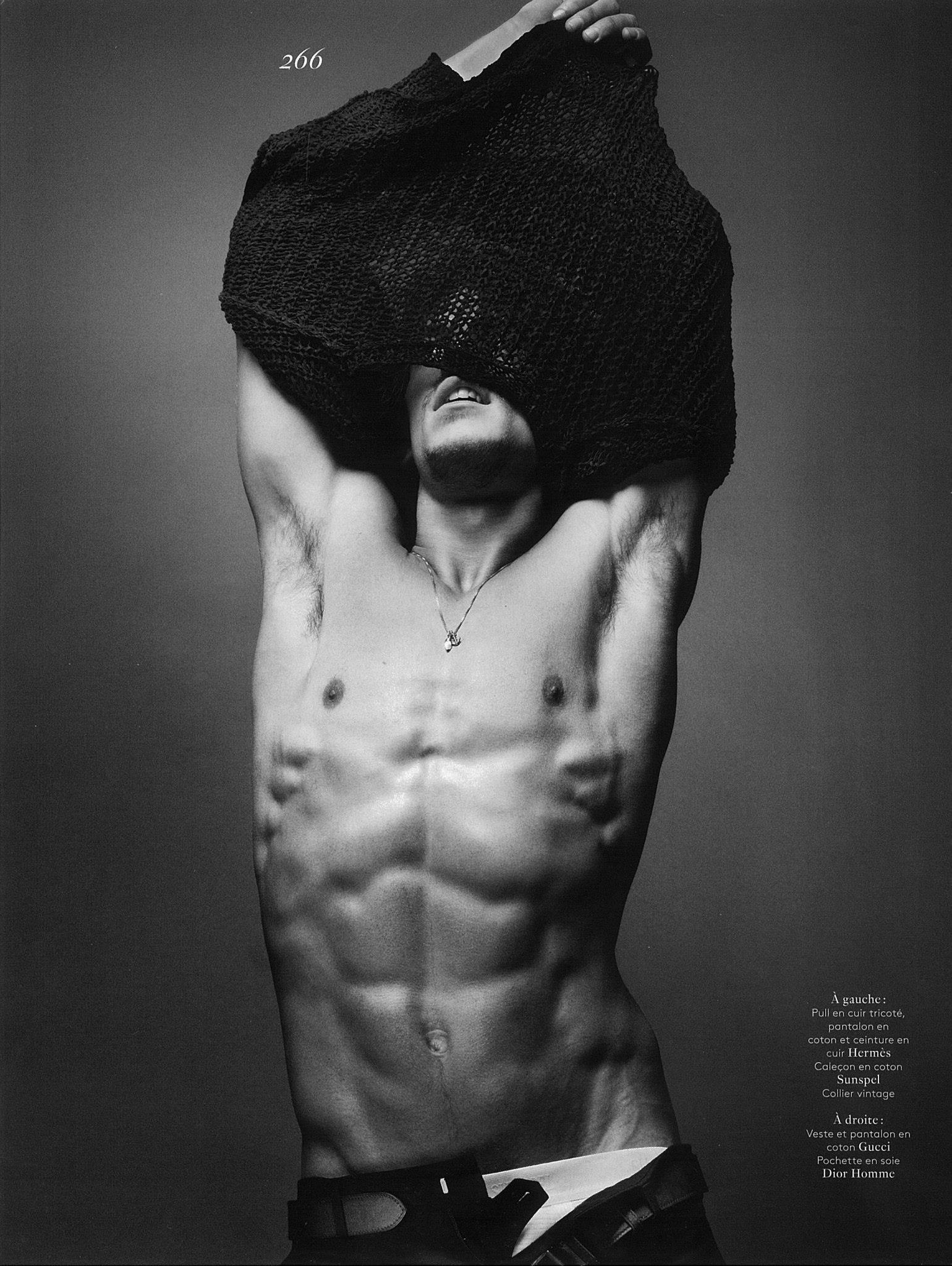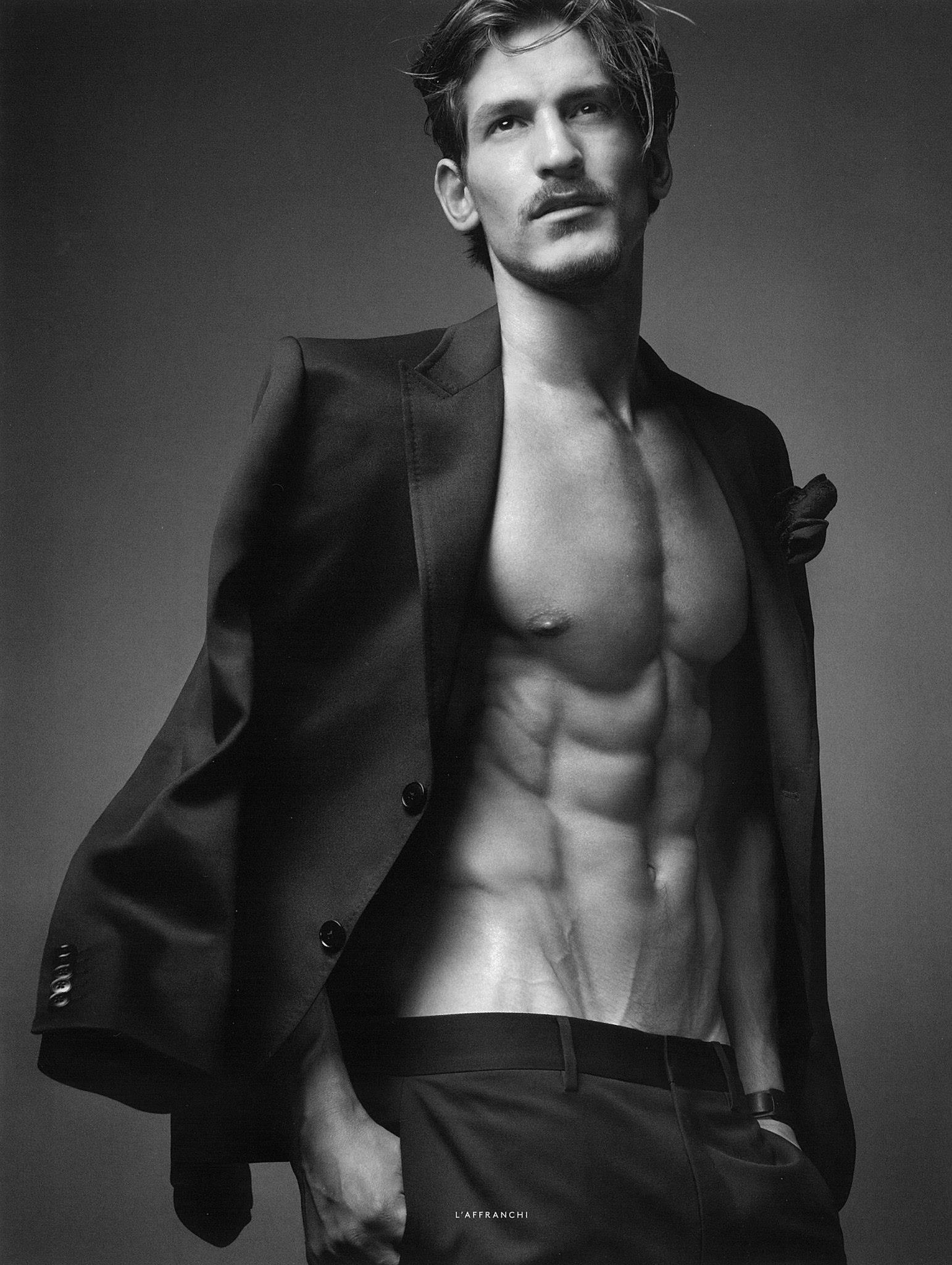 New Review–After delighting us with the stunning cover for Vogue Hommes International’s spring/summer 2013 issue, Australian model Jarrod Scott graces the pages of the glossy magazine in a black & white spread. Captured once more by photographer Sølve Sundsbø, Jarrod is styled by Beat Bolliger in a wardrobe focused on luxury suits, alternated with more relaxed looks. The designs of Gucci, Dolce & Gabbana, Dior Homme, Bottega Veneta and many more, provide a variety of styles that have in common the concept of unrestrained luxury for the upcoming season.