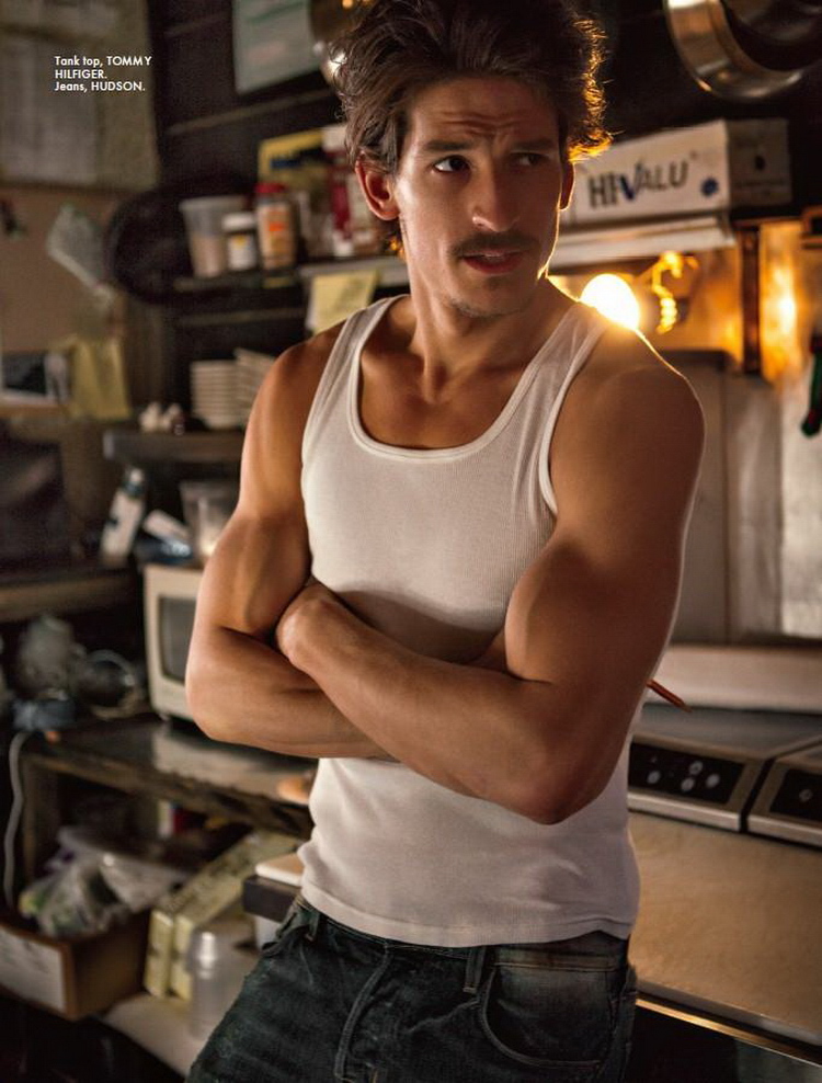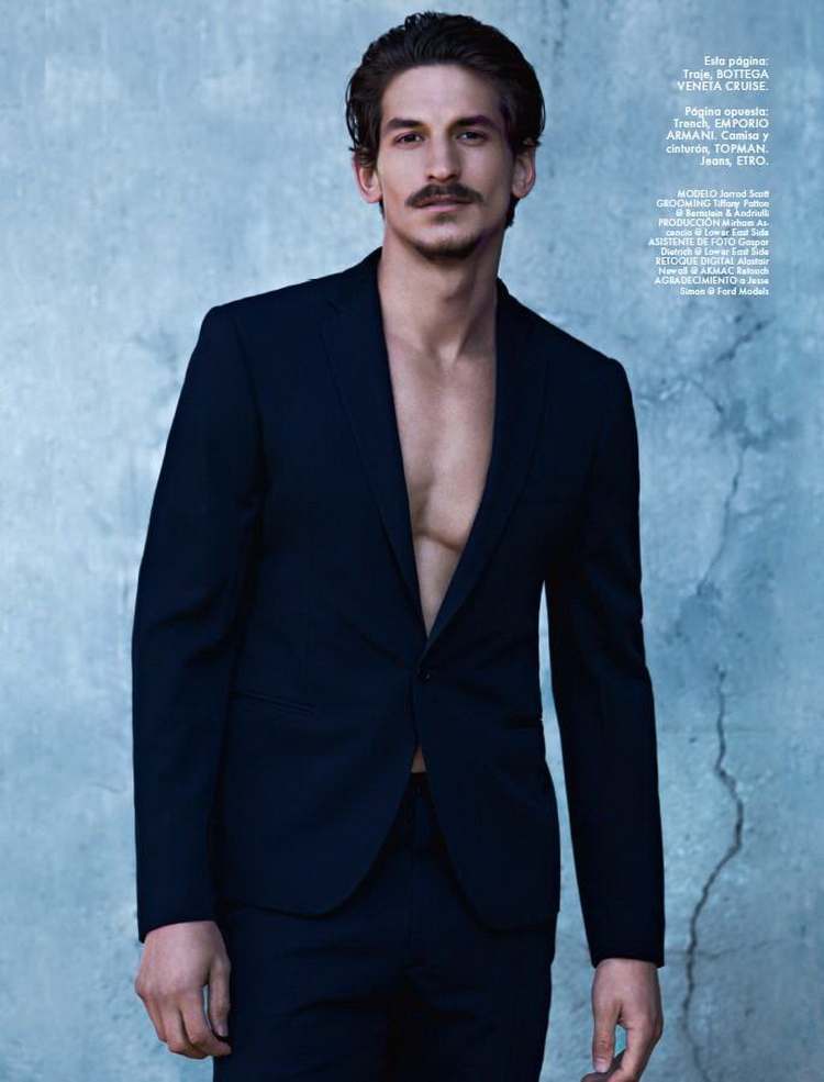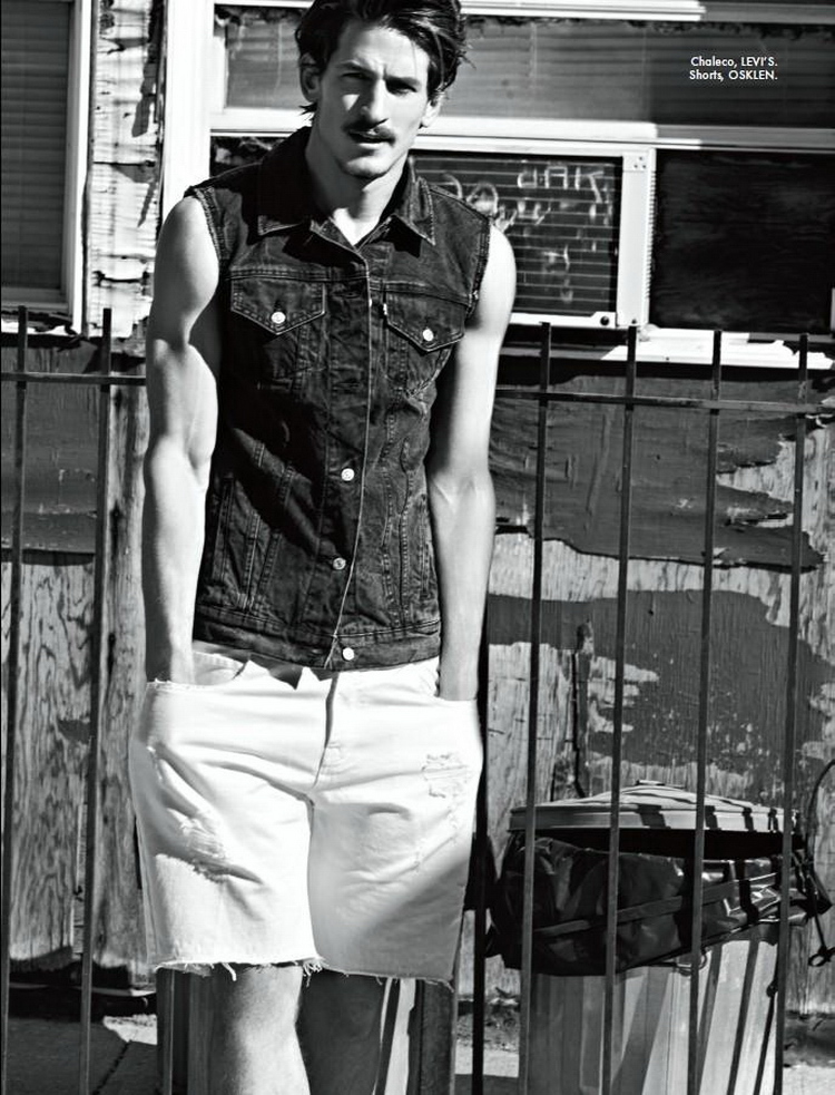 A Rebel in NYC–After posing for the latest cover of Elle Man Mexico, model Jarrod Scott reunites with photographer Santiago Ruiseñor to shoot a fashion spread styled by John Tan. Hitting the streets of the Big Apple in leather jackets, jeans and tank tops, Jarrod brings to life to the timeless figure of the charming rebel, thanks to his unique angles, toned body, and confidence. / Grooming by Tiffany Patton.
