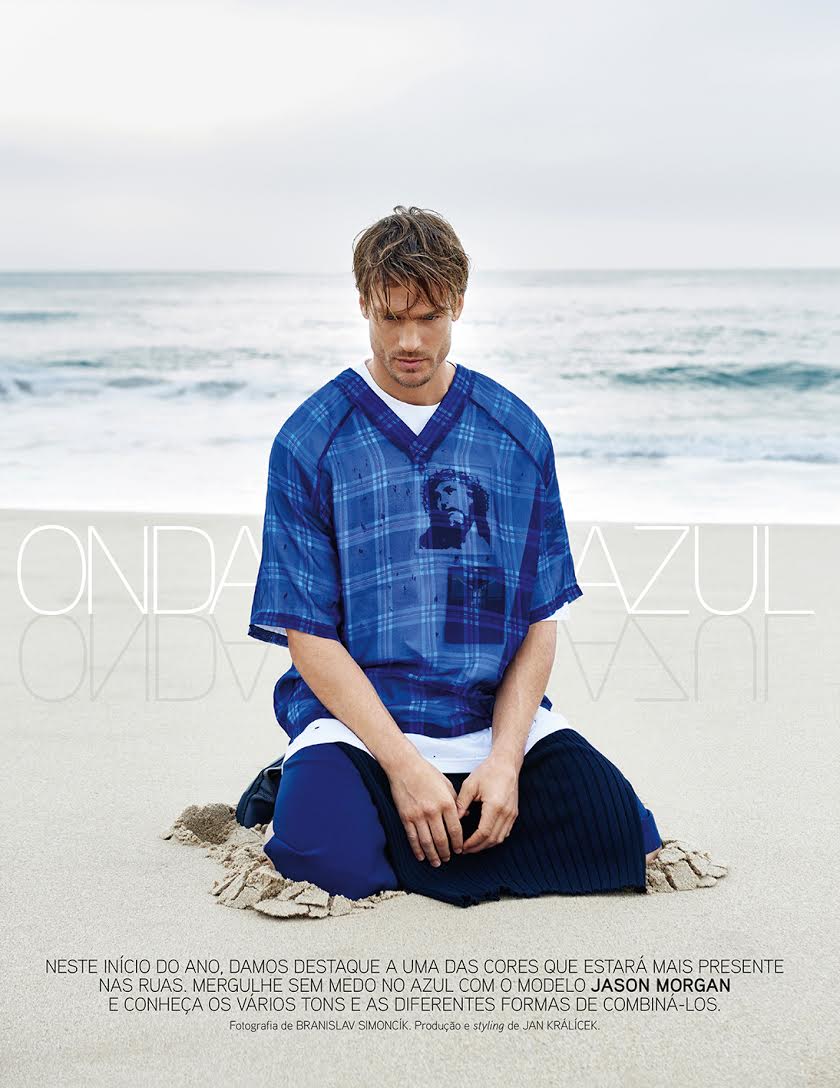 Outfitted by stylist Jan Kralicek, model Jason Morgan embraces modern proportions for a picturesque story from the January/February 2016 issue of GQ Portugal. Heading to the beach for an inspiring outing, Jason links up with fashion photographer Branislav Simoncik. Wearing elongated silhouettes, Jason is quite the vision to take in as he showcases spring fashions from Givenchy, Emporio Armani, Prada and more. / Grooming by Elodie Fiuza.