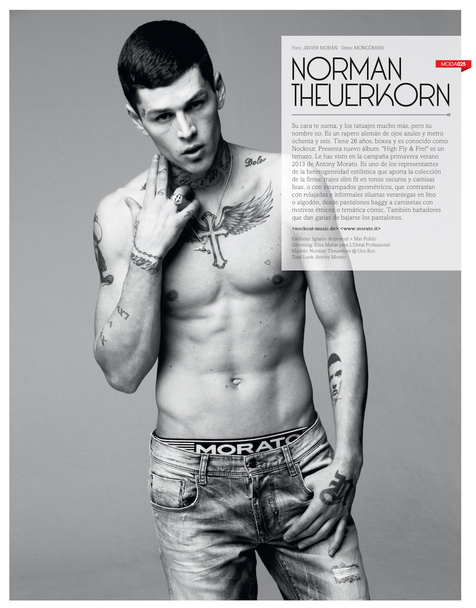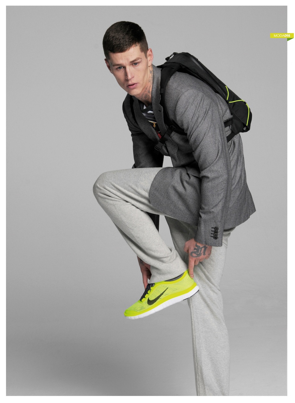 A Fashionable Blend–Spring 2013 is definitely a season where mixing classic pieces in menswear with sportswear garments is at the order of the day, and reworking them with vibrant and neon colors or with graphic details is allowed, as displayed by Neo2’s latest cover story, starring IZAIO model Norman Theuerkorn. Captured by Javier Morgan in studio images, Norman is styled by Ignazio Arizmendi in a wardrobe that reveals an eclectic twist, where Burberry Prorsum’s metallic reflections or Dior Homme’s graphic minimalism define this season’s new direction of melting opposite inspirations.