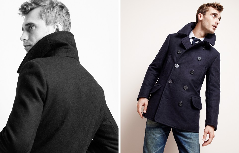 The Classic Coat: Clément Chabernaud wears Dock Peacoat with Thinsulate, Thomas Mason for J.Crew Ludlow Shirt in Paradise Blue Stripe, Wallace & Barnes Straight Selvedge Jeans in Brighton Wash, Ludlow Wing Tips and Italian Wool Tie in Mini-Herringbone, all from J.Crew.