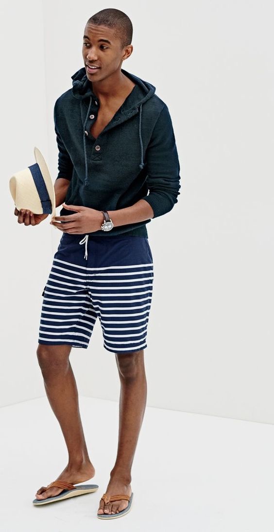 J.Crew infiltrates the season with swimwear, juxtaposing the relaxed summer essential with its standard lineup of classic menswear. Tropical print shorts, cotton sweatshirts, plaid shirting and timeless essentials such as the Baracuta G9 Harrington jacket contribute to J.Crew’s laid-back wardrobe options. Highlighting tailoring, the brand’s Crosby and Ludlow suits make a smart final impression.