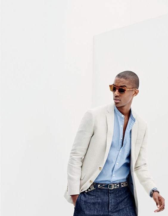PinJ.Crew men’s Ludlow blazer in French linen, band-collar shirt in webber stripe, Wallace & Barnes chino in indigo selvedge denim, Irving sunglasses and woven indigo diamond belt.PinJ.Crew men’s Ludlow suit jacket in microstripe Italian cotton, slim cotton-linen shirt, Ludlow suit pant in microstripe Italian cotton, tie in mini-herringbone, arrow tie bar, tipped Italian linen pocket square, classic leather belt with removable silver-plated buckle, Mougin & Piquard™ chronovintage watch and Alden® for J.Crew waxed longwing bluchers.PinJ.Crew men’s Crosby suit jacket in Italian chino, garment-dyed T-shirt, Japanese selvedge 770 jean in white and silk scarf in dot.PinJ.Crew men’s Ludlow suit jacket in Irish linen, textured cotton tipped polo shirt, Ludlow suit pant in Irish linen and Adidas® Samba® sneakers.PinJ.Crew men’s Baracuta® G9 Harrington jacket, broken-in T-shirt and pleated trouser in Cone Denim® indigo-dyed chambray.