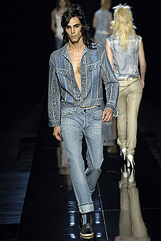 Spring 2007: Glam Rock inspires a lineup of mullets and brave ensembles that included denim on denim.Pin