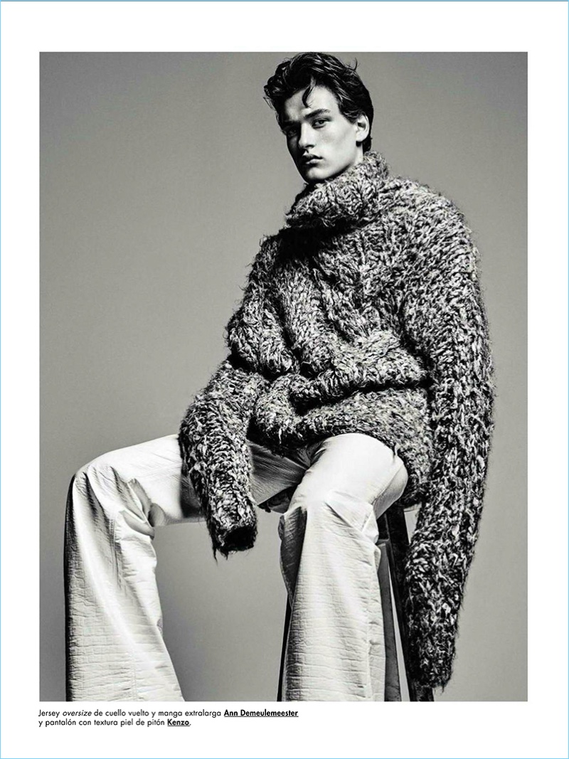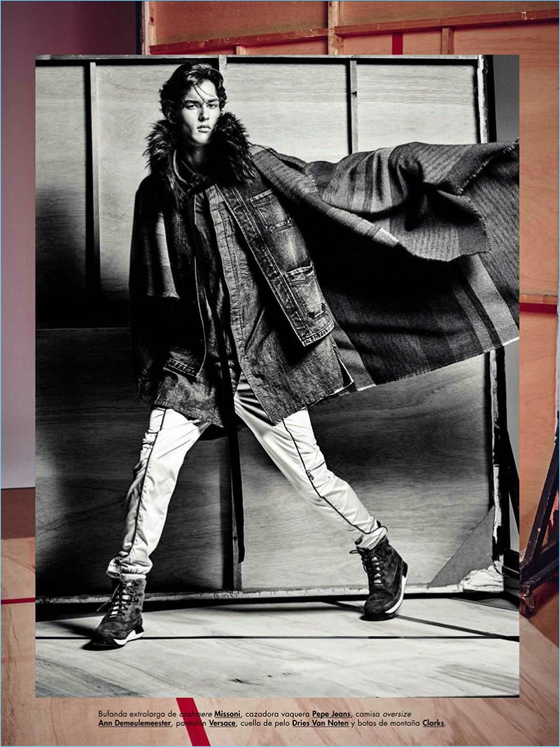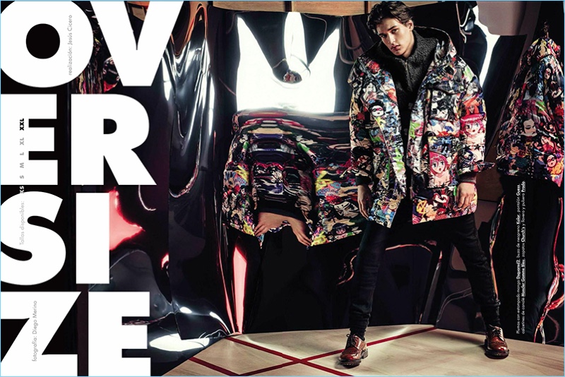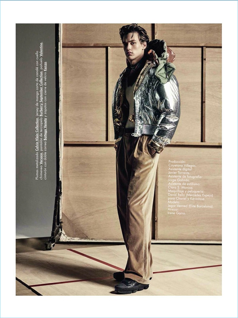 The oversized fashion trend is front and center for GQ España’s most recent editorial. The magazine tackles dramatic proportions for its December 2016 issue. Starring in the fashion spread, model Jegor Venned connects with Diego Merino. The fashion photographer works closely with stylist Jesus Cicero to capture the dynamic outing. Oversized coats, shirts, and trousers dominate the editorial with featured luxury labels such as Prada.