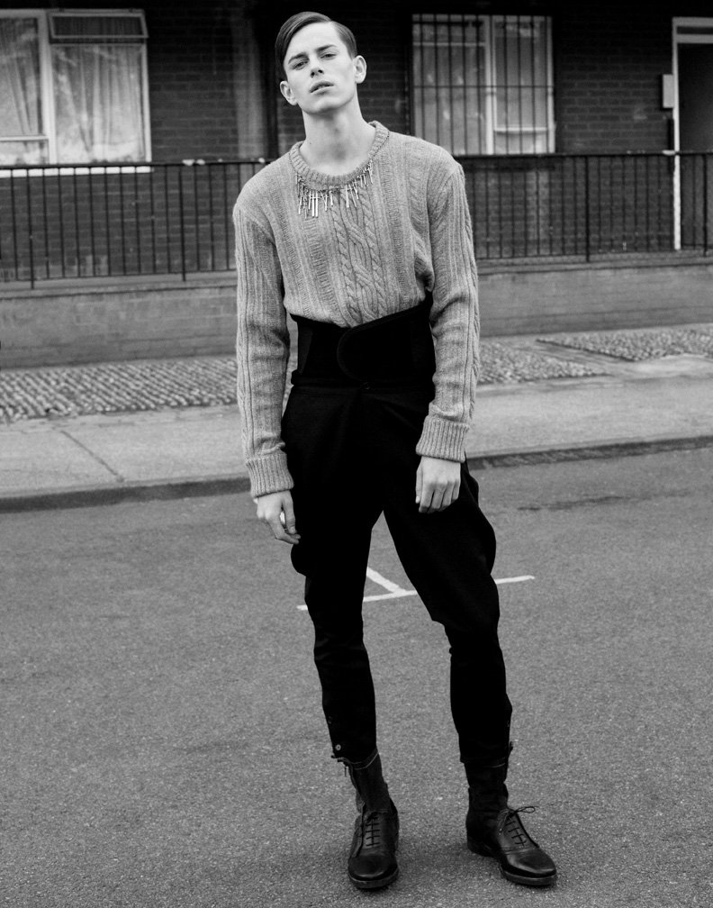 Jeremy Young is photographed by Thomas Lohr for German magazine Husk. Hitting the streets in fashionable tatters, Jeremy is styled by Kenny Ho for an outing of great feeling.