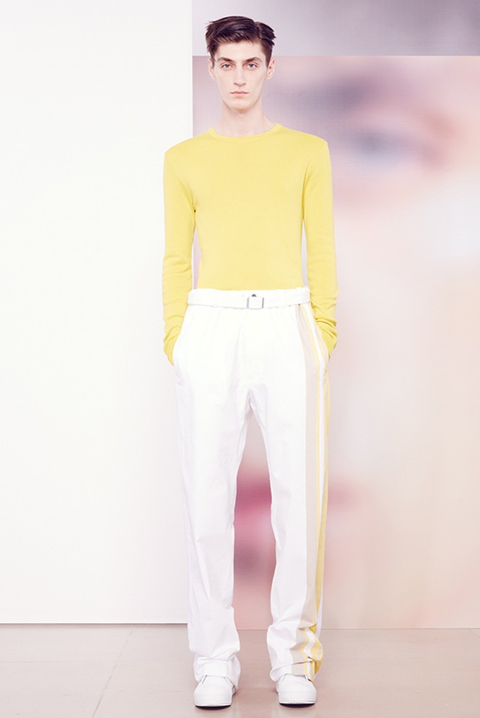 Jil Sander Spring/Summer 2015–Awaiting the September arrival of new Jil Sander creative director Rodolfo Paglialunga, the in-house design team crafted the spring/summer 2015 collection. Inspired by the vibrations that occur on the surface of water as a result of music, a minimal collection with bright spots of serene hues came together. Playing with slim-cuts and smart volume, suiting, knitwear and sportswear work nicely together for a smart spring outing.